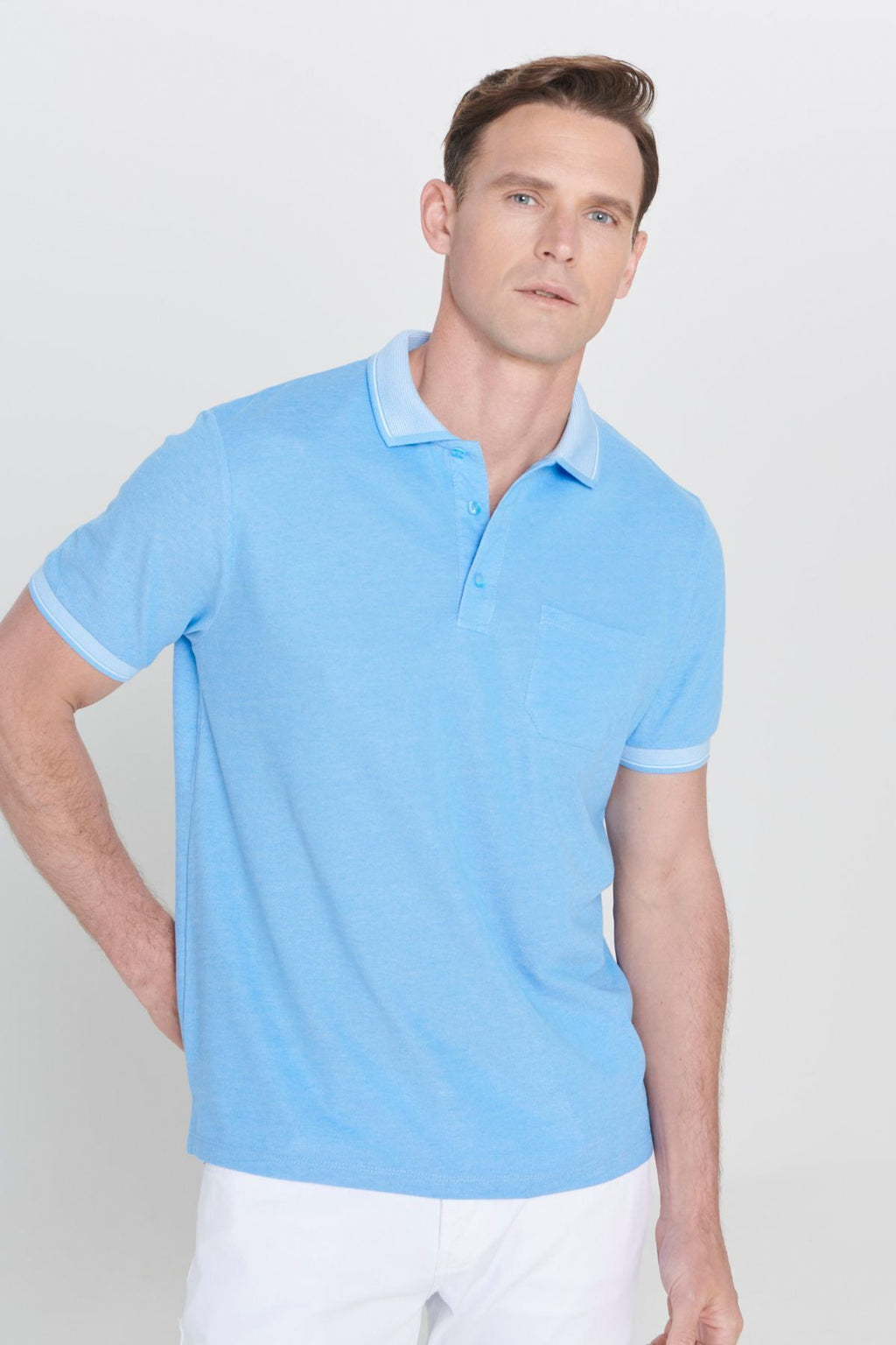 Men -Plugging Cotton Fabric Regular Fit comfortable cut blue curved polo collar pocket t -shirt