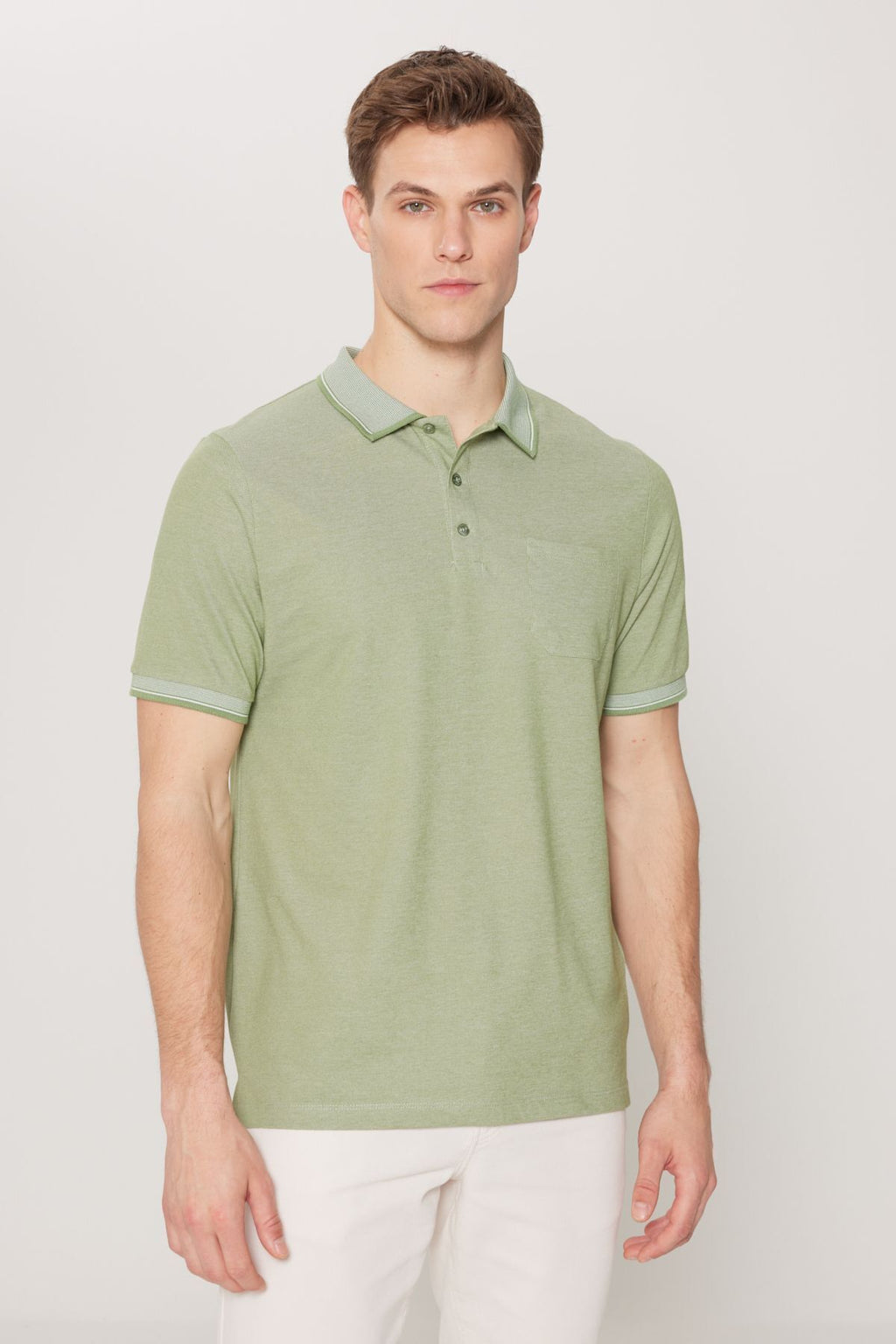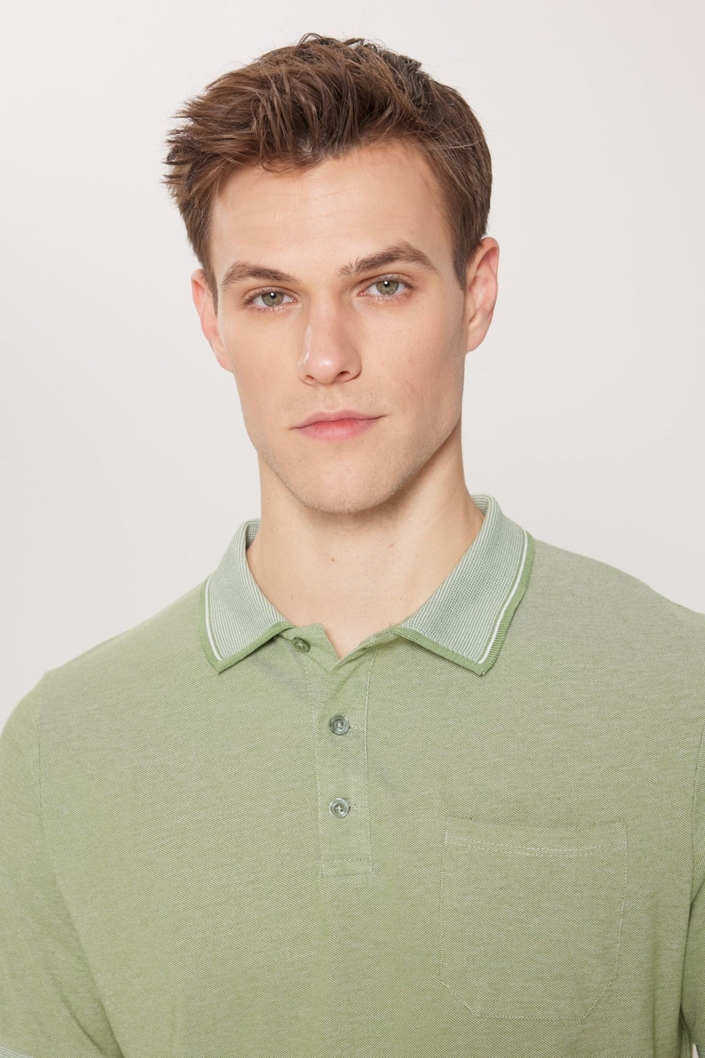 Men -Plugging Cotton Fabric Regular Fit comfortable cut green curved polo collar t -shirt
