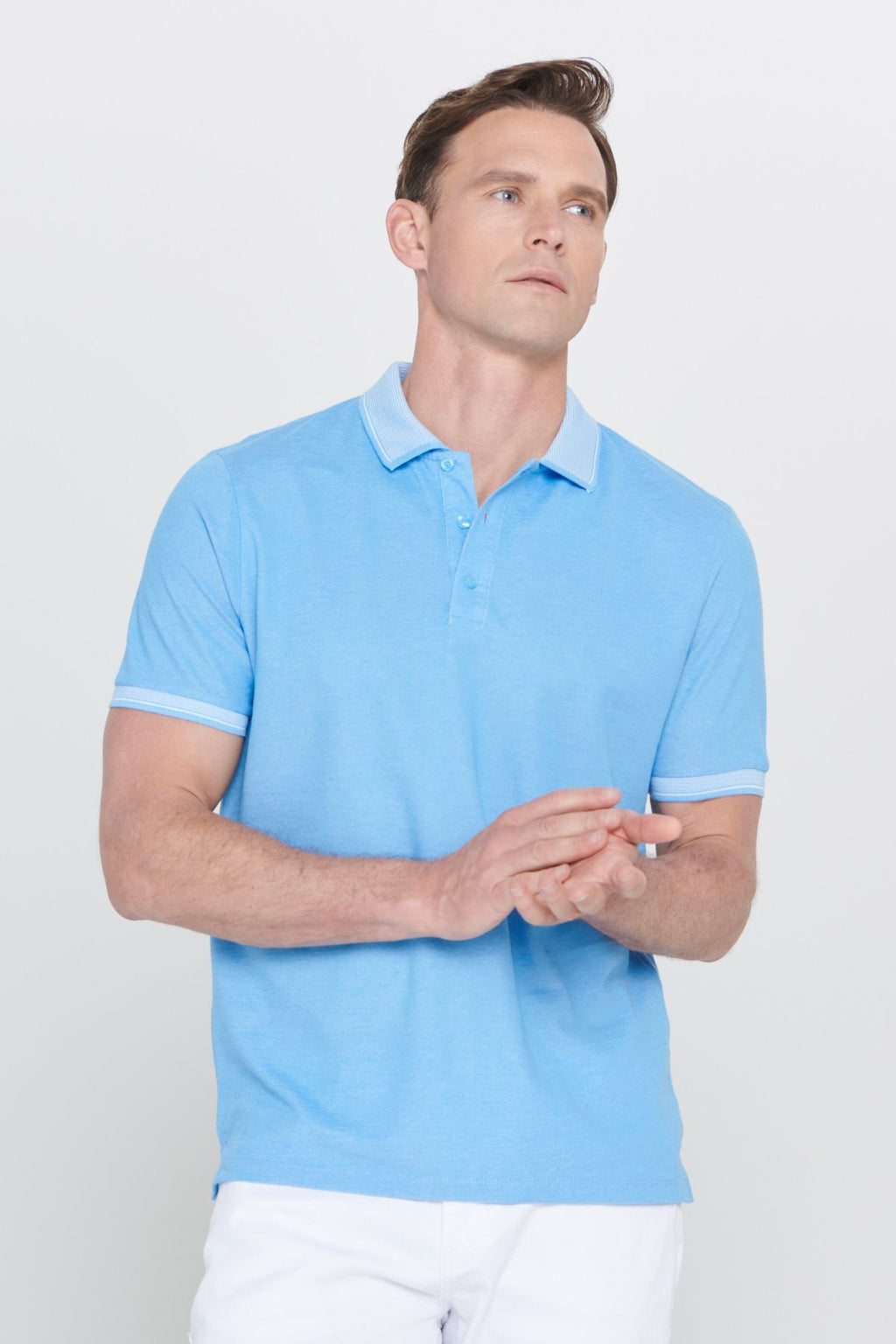 Men -Plugging Cotton Fabric Slim Fit Narrow Cut Blue Curled Polo Yaka T -shirt