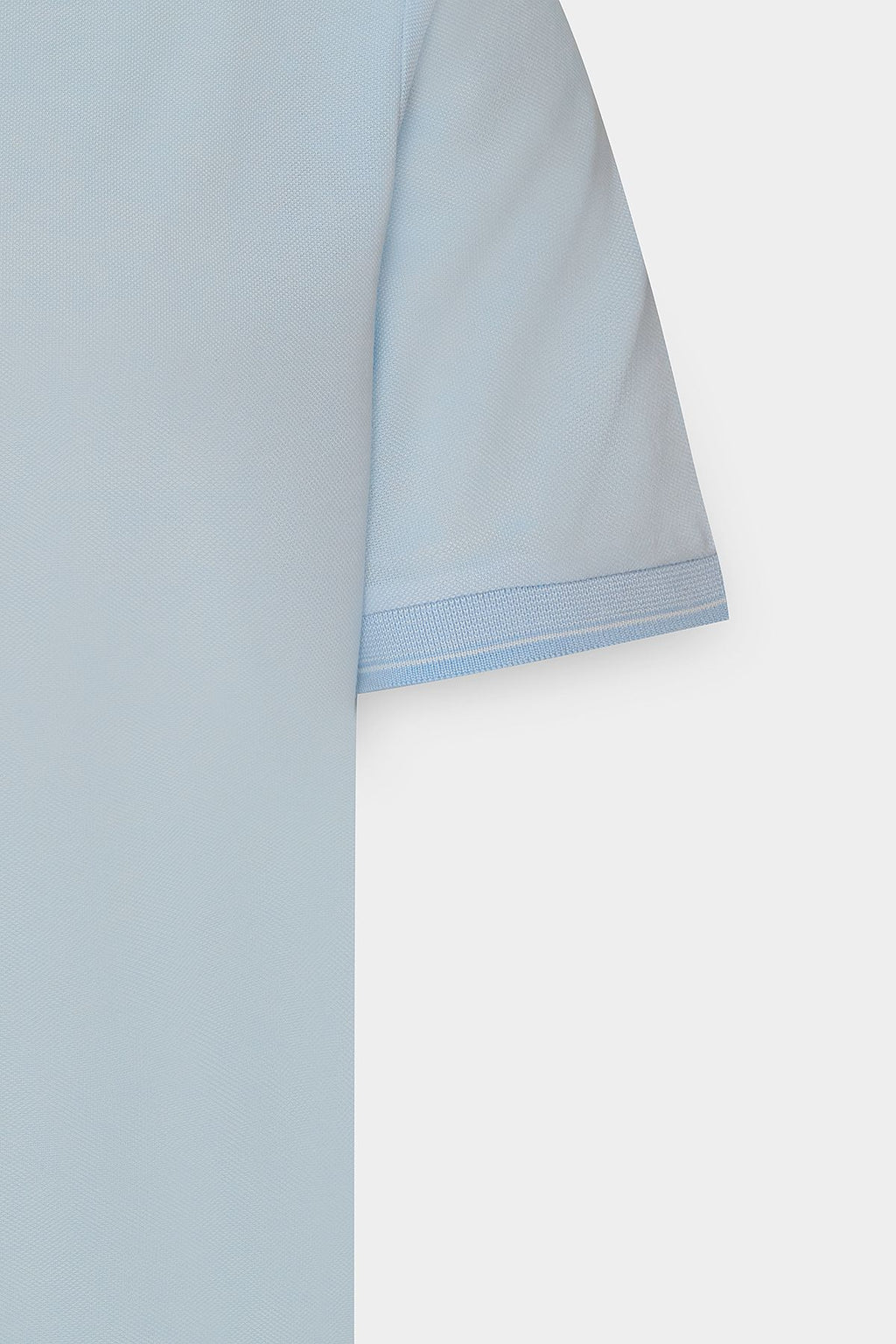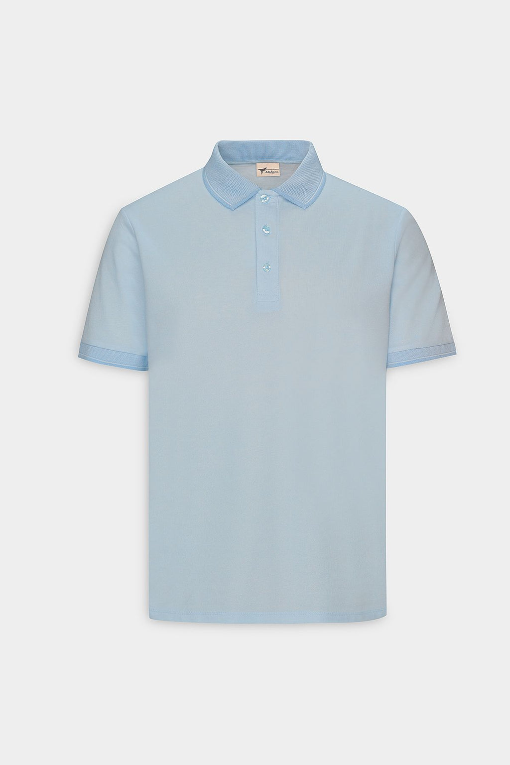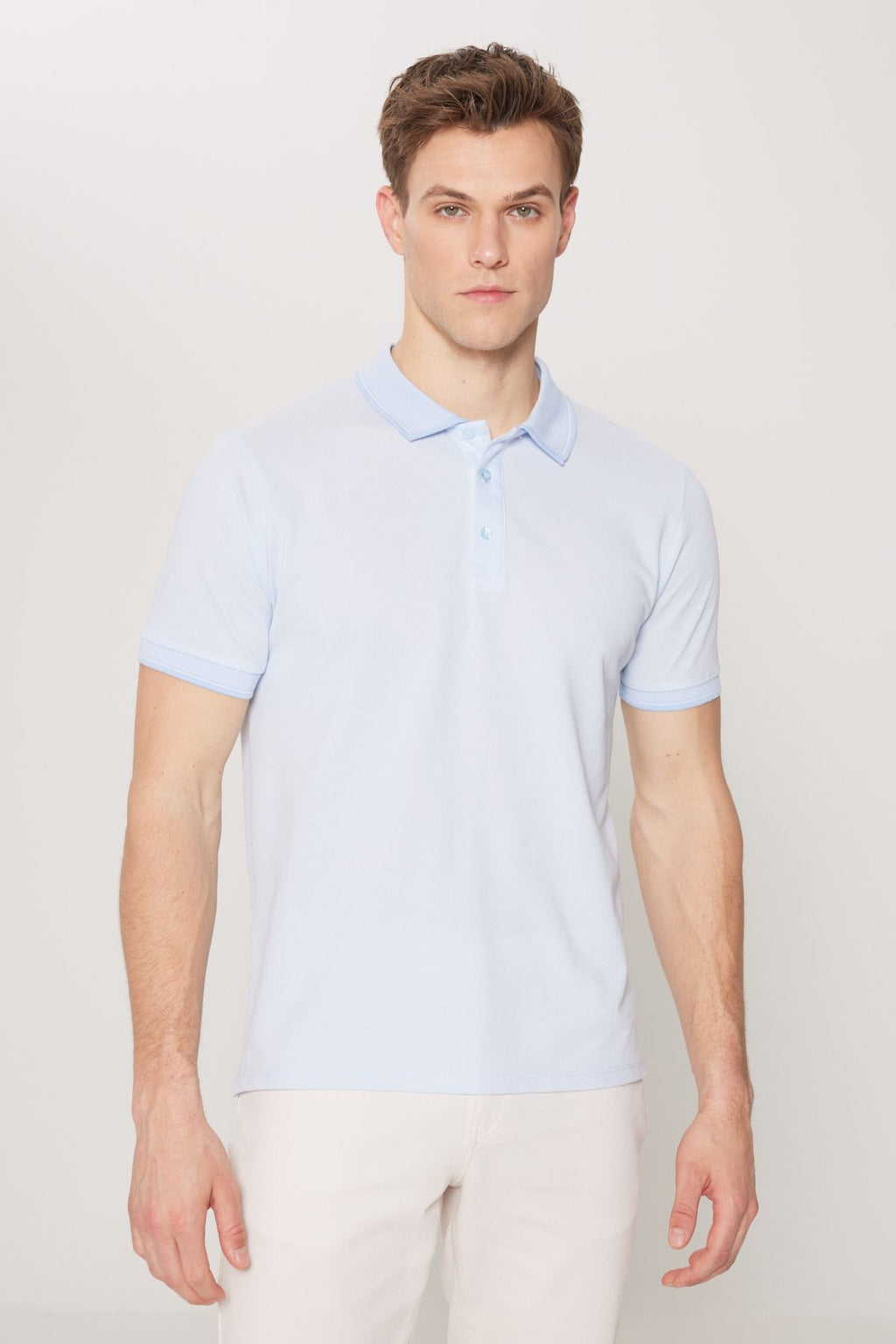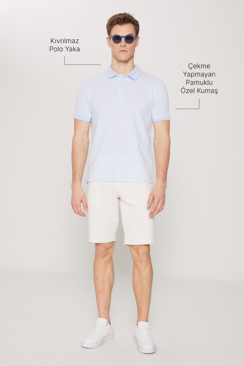 Men -Plugging Cotton Fabric Slim Fit Narrow Cut Light Blue Curled Polo Yaka T -shirt