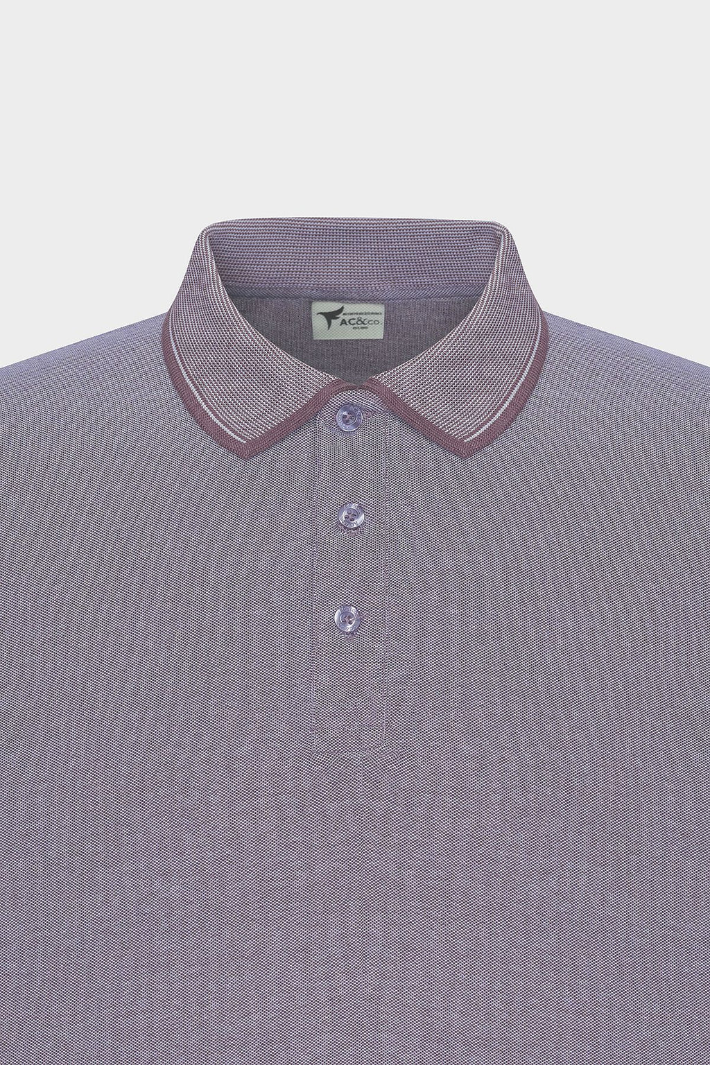 Men-Plugging Cotton Fabric Slim Fit Narrow Cut Purple-White Curlled Polo Yaka T-shirt