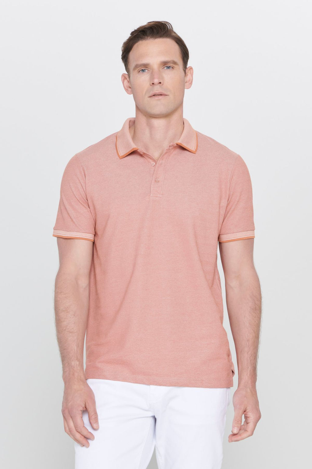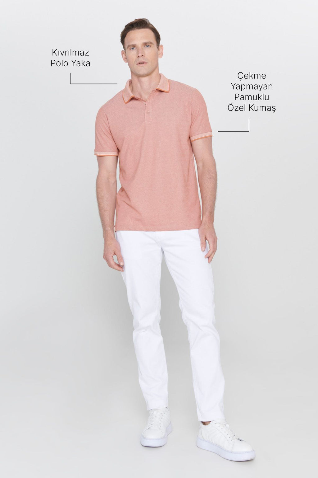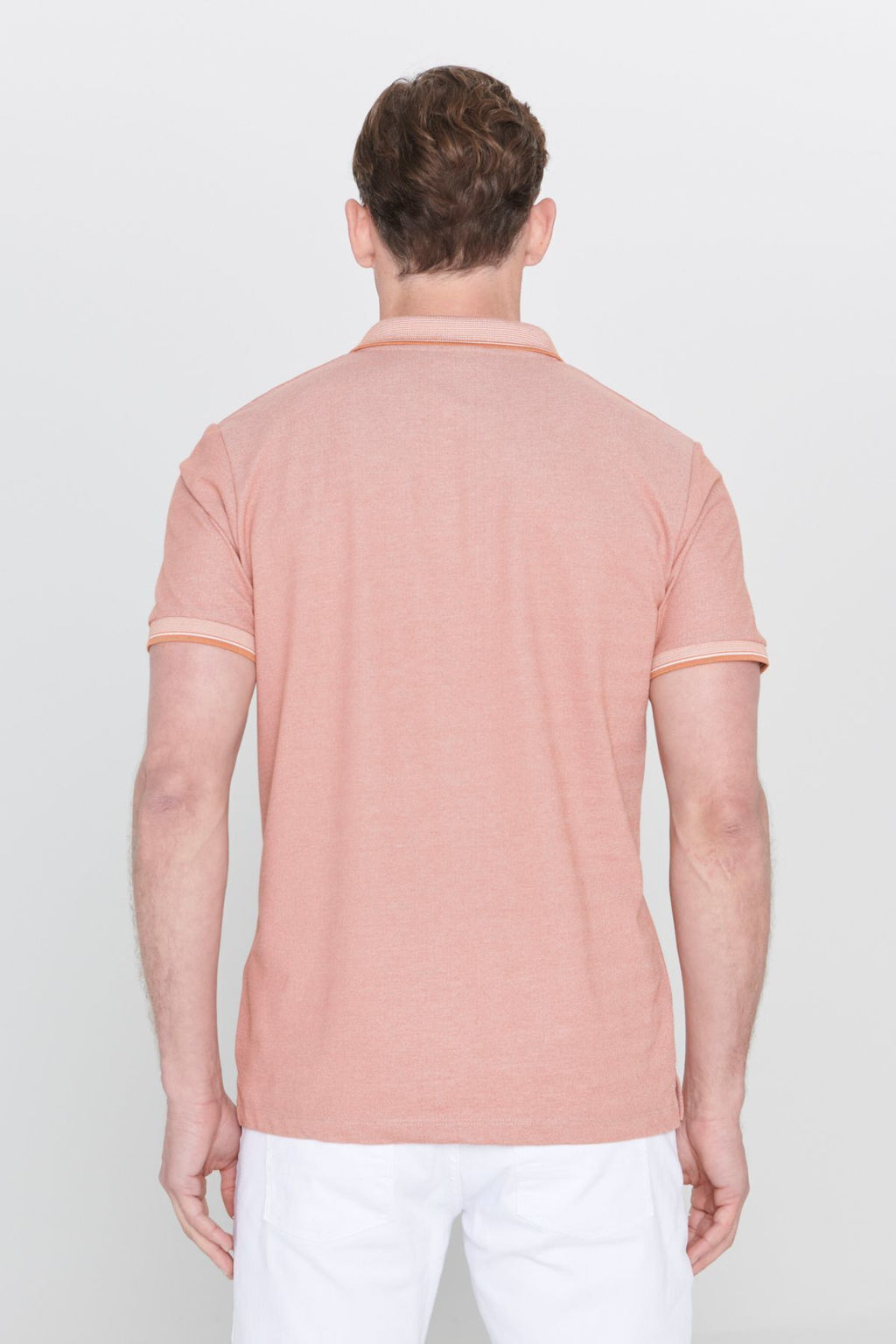 Men-Plugging Cotton Fabric Slim Fit Narrow Cutting Tile-Bej Curled Polo Yaka T-shirt
