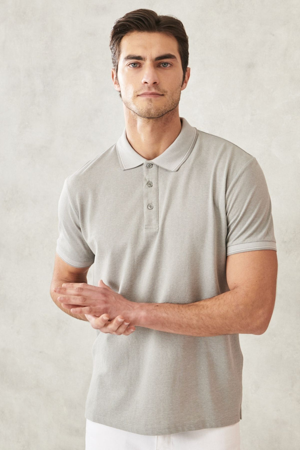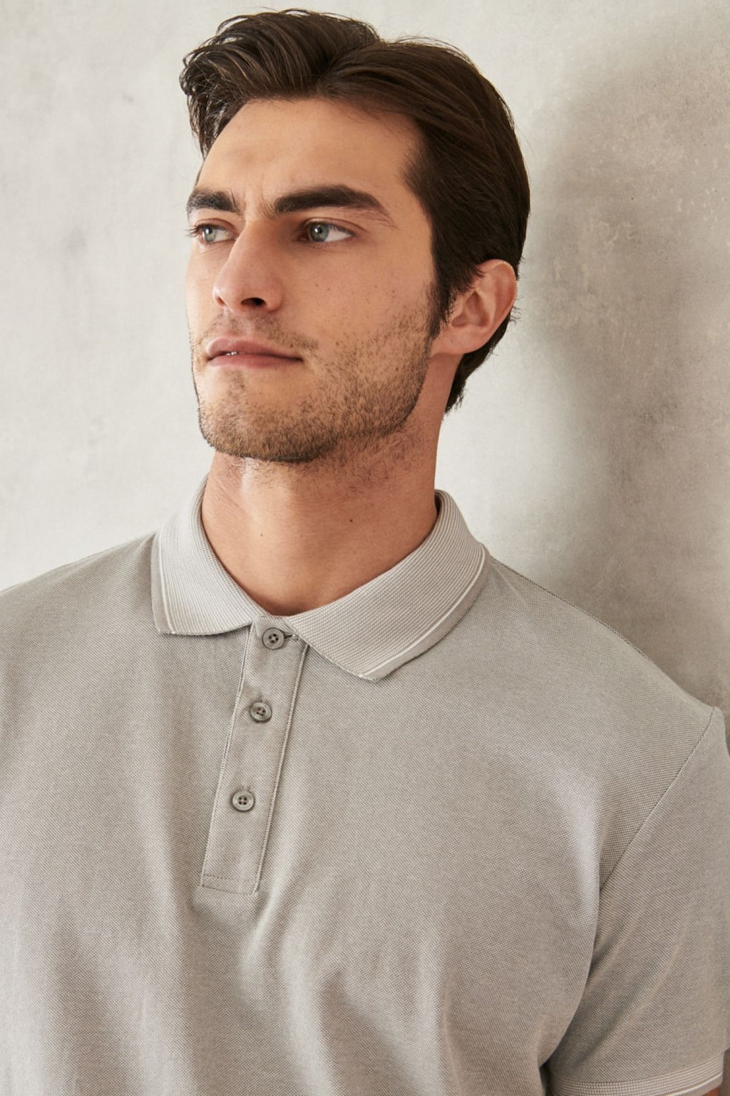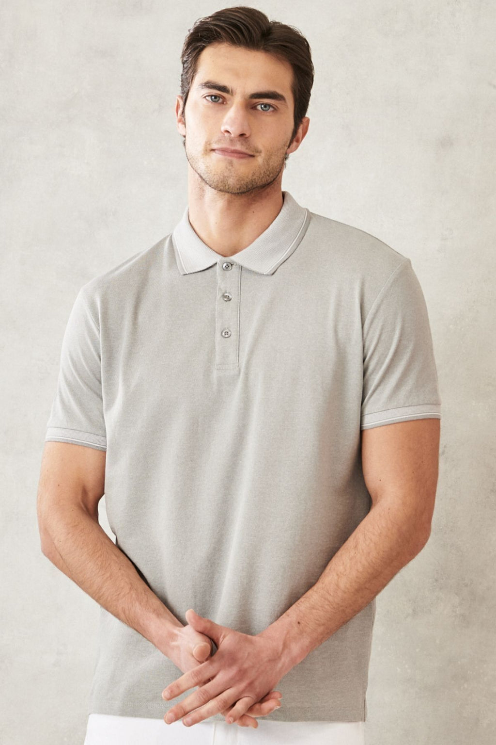 Men -Plugging Cotton Fabric Slim Fit Night Cut Gray Gray Curlled Polo Yaka T -shirt