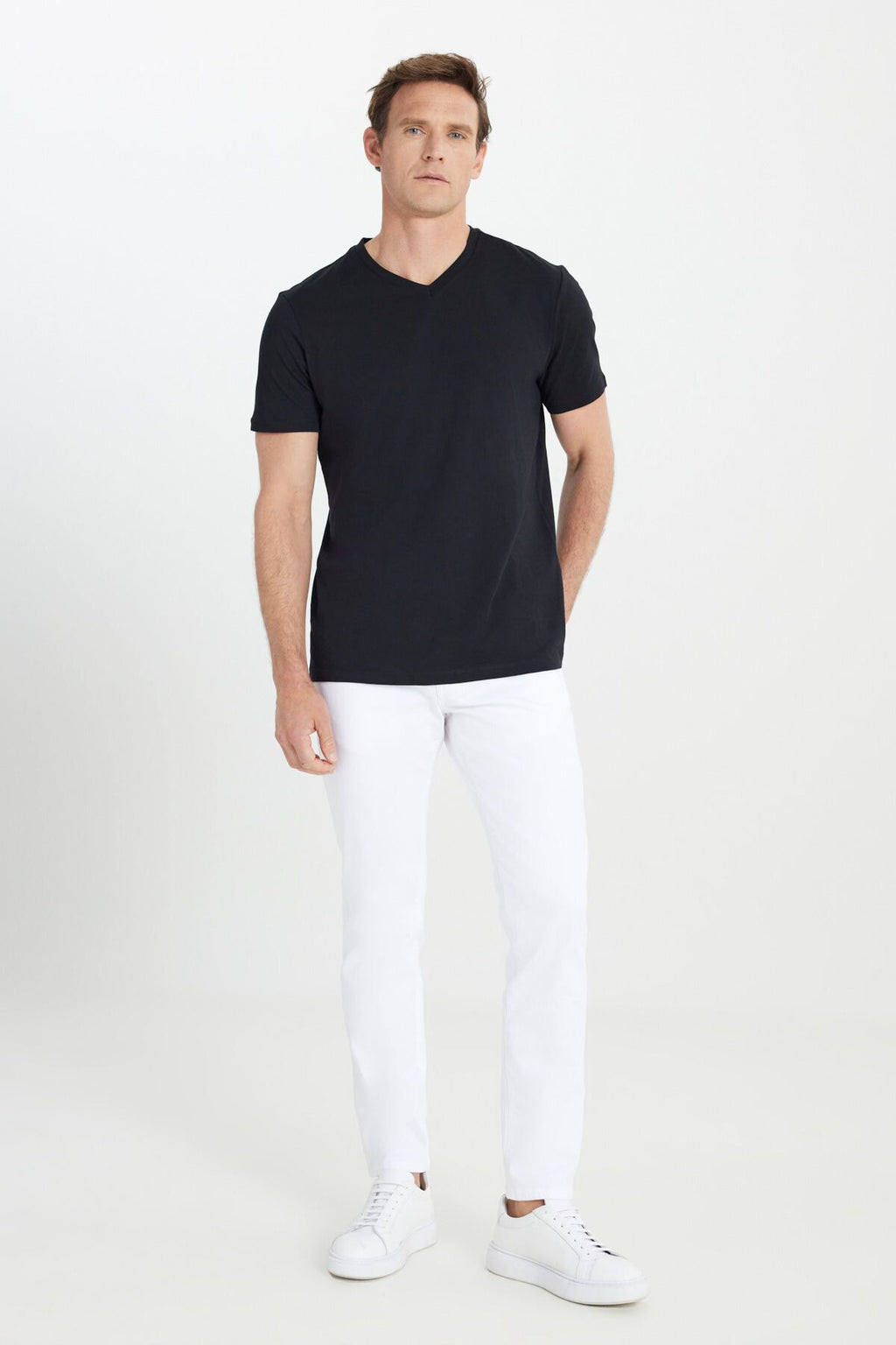 Men's 100 %Cotton V -Neck Black Slim Fit Narrow Cut T -shirt