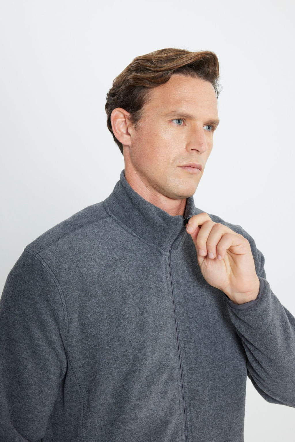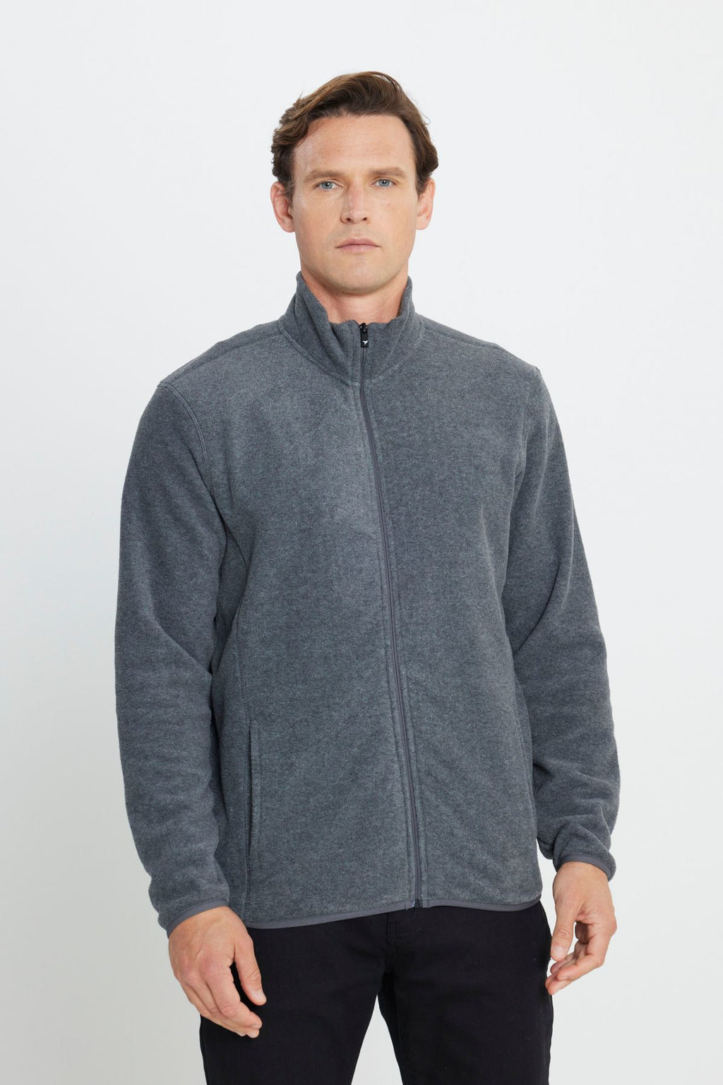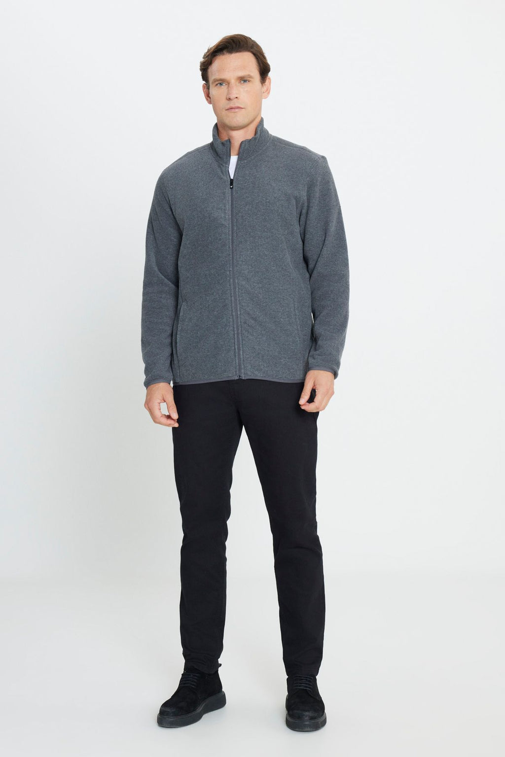 Men's anthracit-melanj anti-pilling standard fit upright neck collar sweatshirt polar jacket