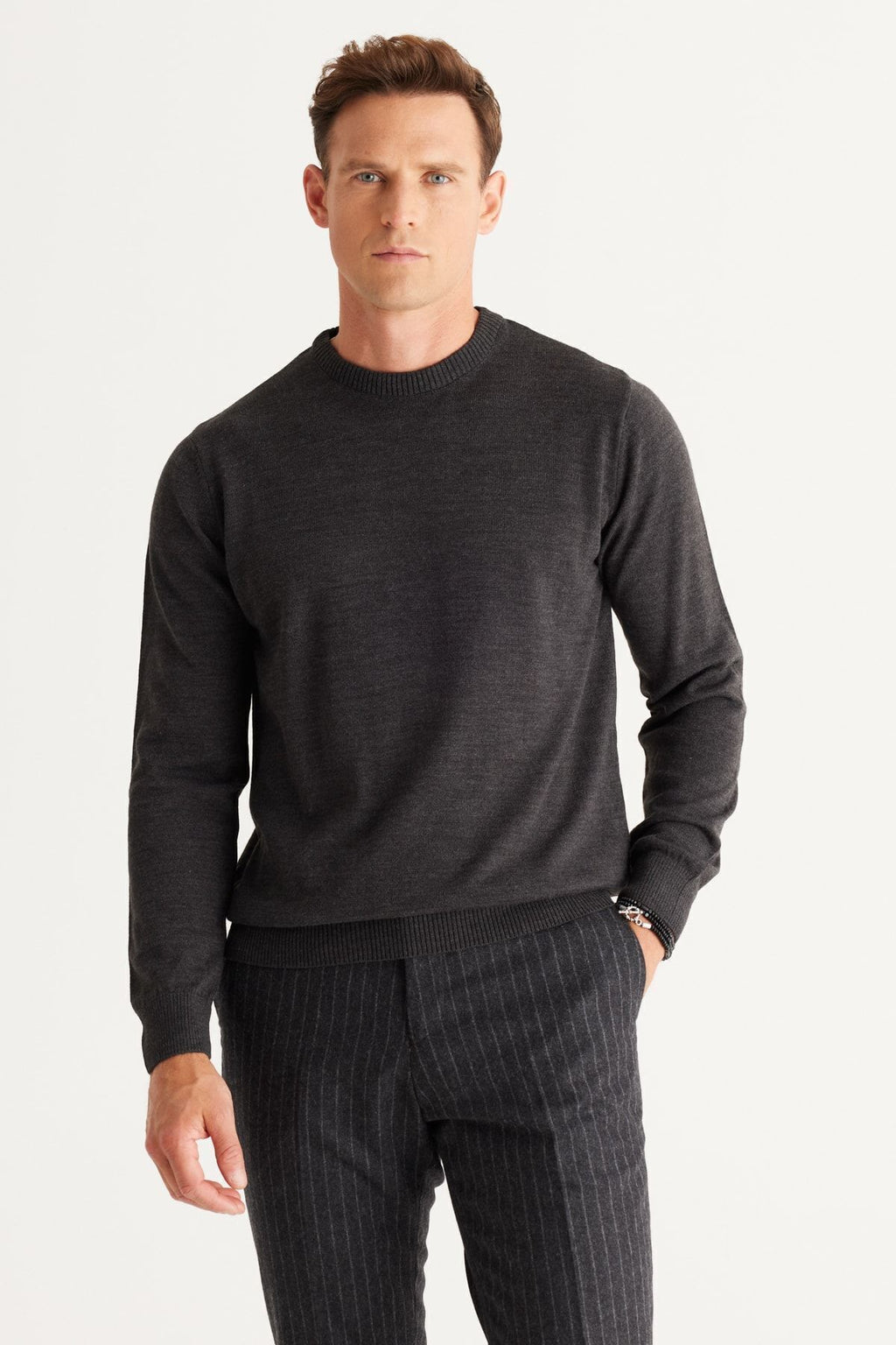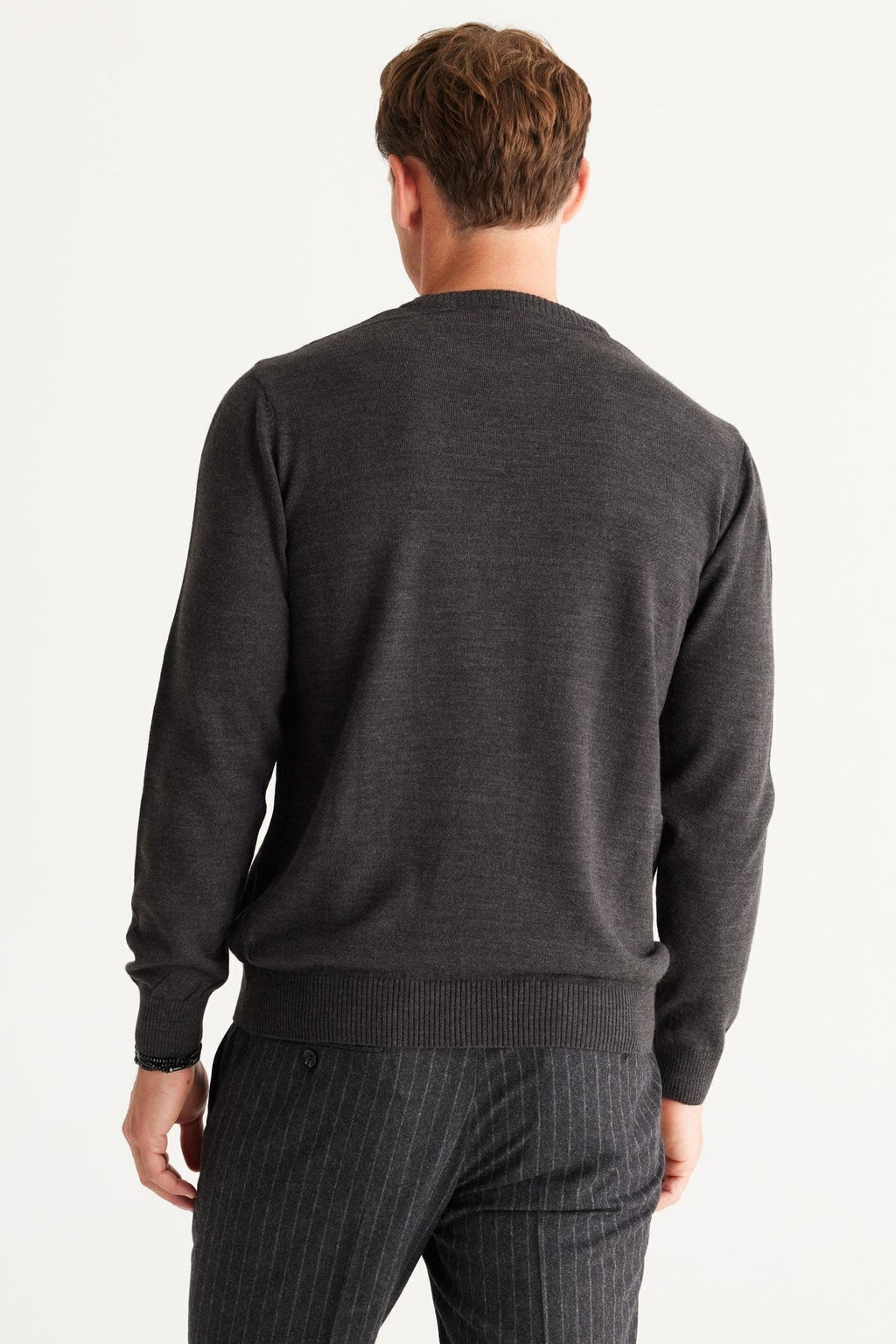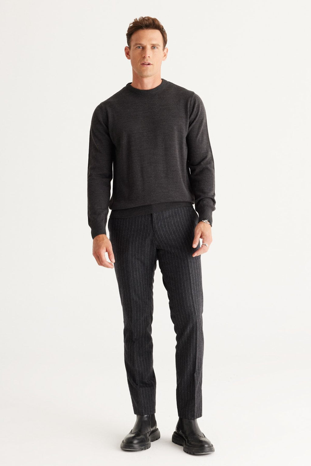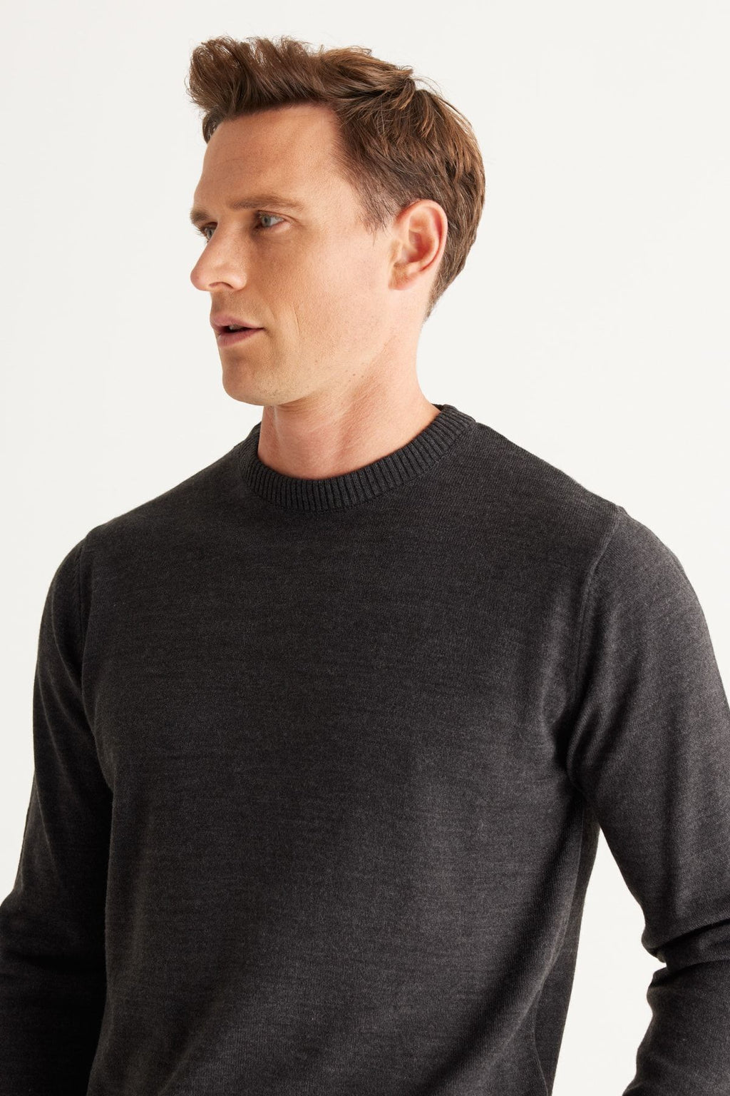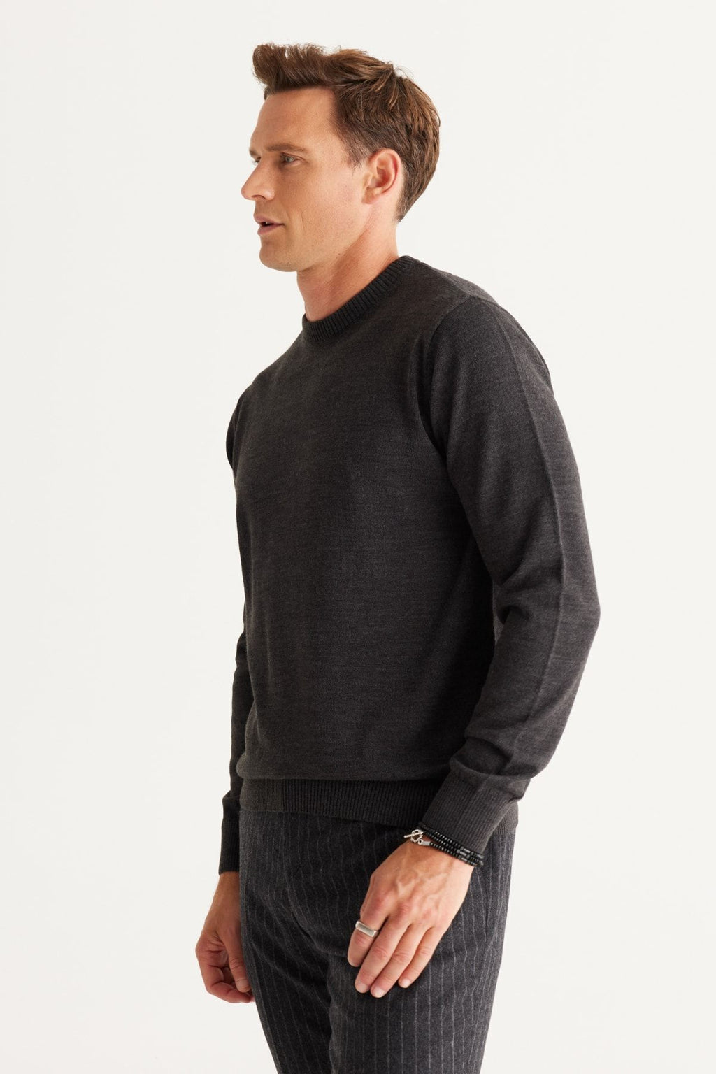 Men's anthracit-melanj standard fit normal cut bike collar knitwear sweater