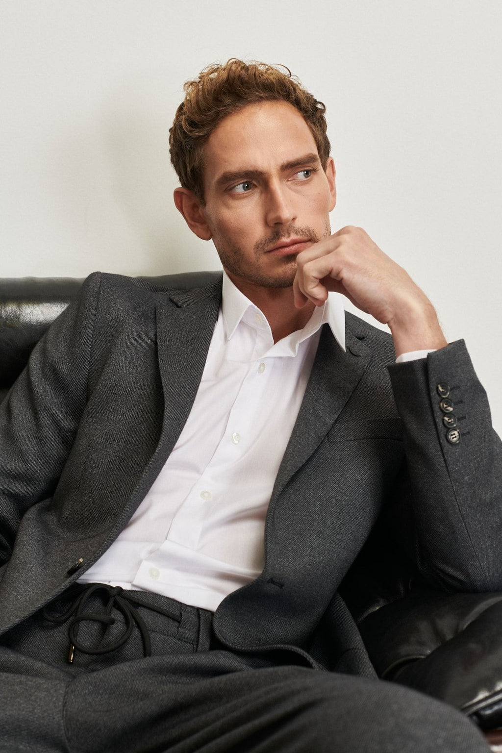 Men's anthracite extra slim fit narrow cut swallow collar diagonal patterned suit suits