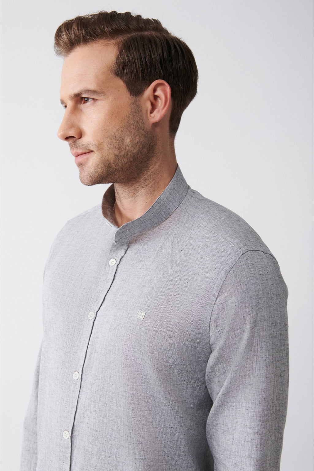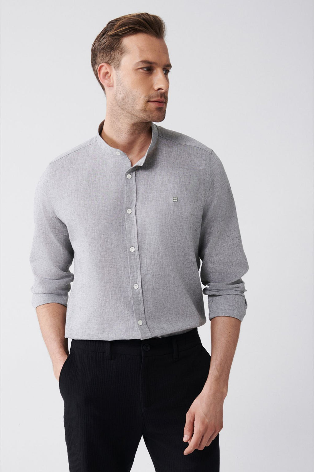 Men's anthracite judge collar linen mixed shirt B002027