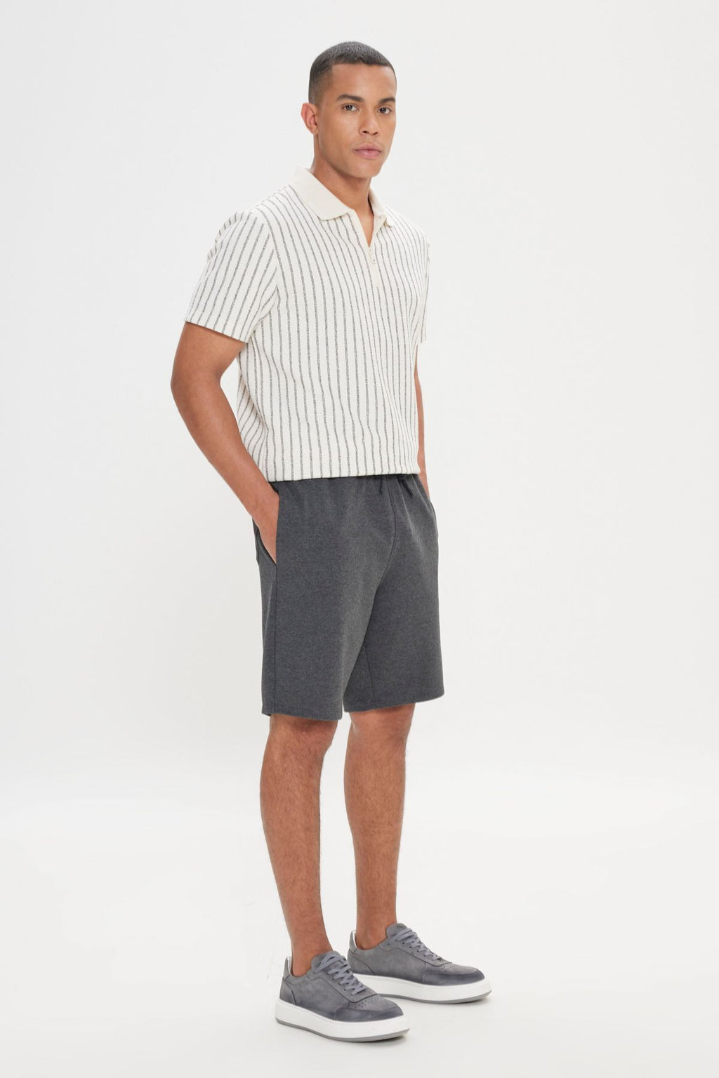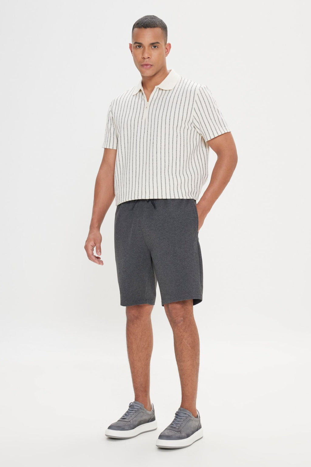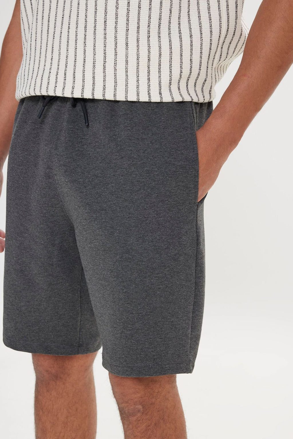 Men's anthracite melange standard fit normal cut cotton flexible knitting shorts