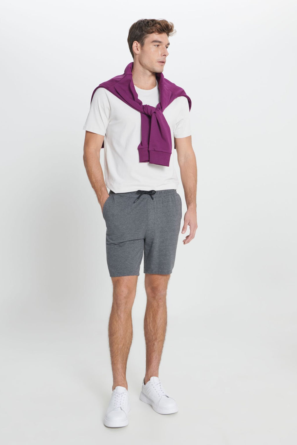 Men's anthracite-melanj standard fit normal cut cotton comfortable knitting shorts