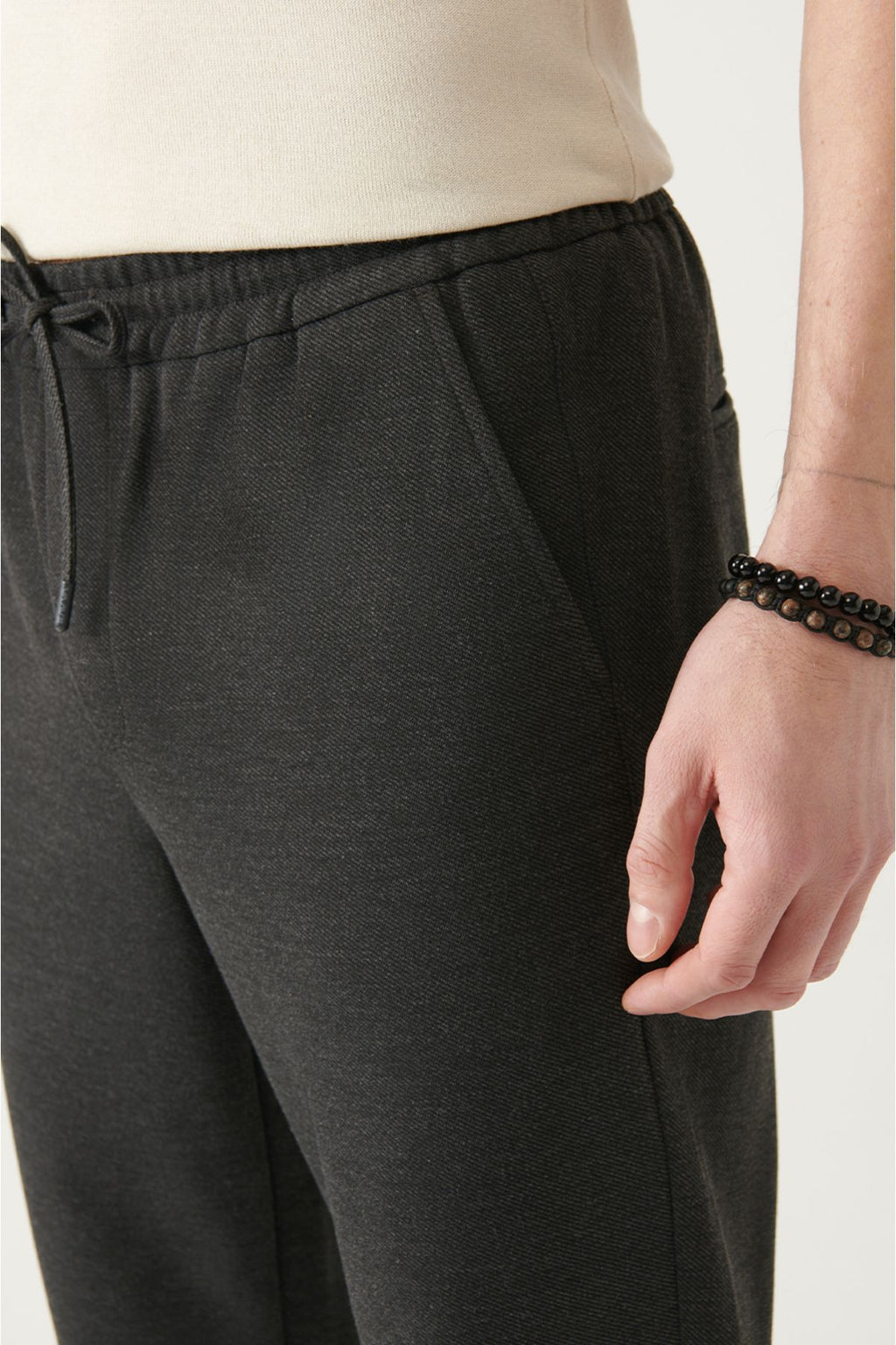 Men's anthracite side pocket lace -up jogger pants B003005