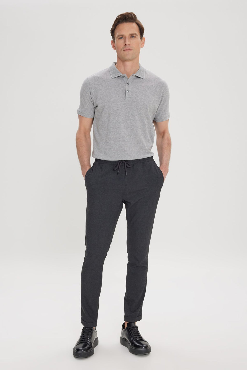 Men's anthracite slim fit comfortable cutting waist tied side pocket jogger pants