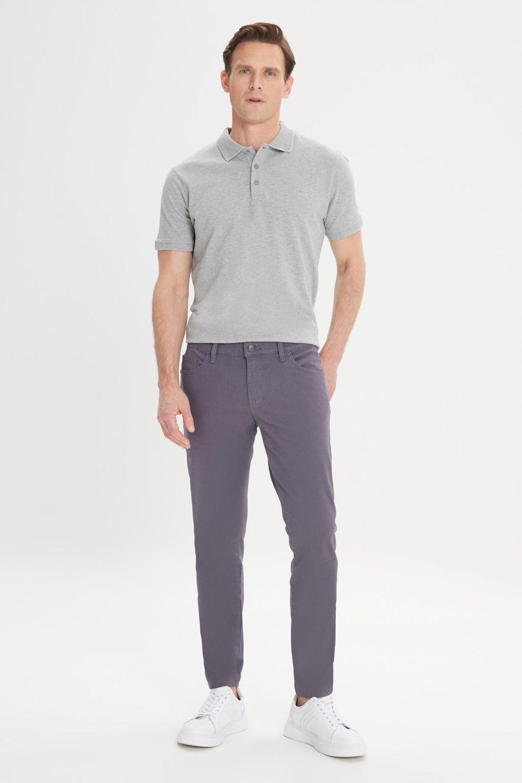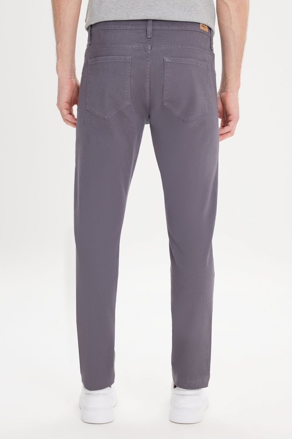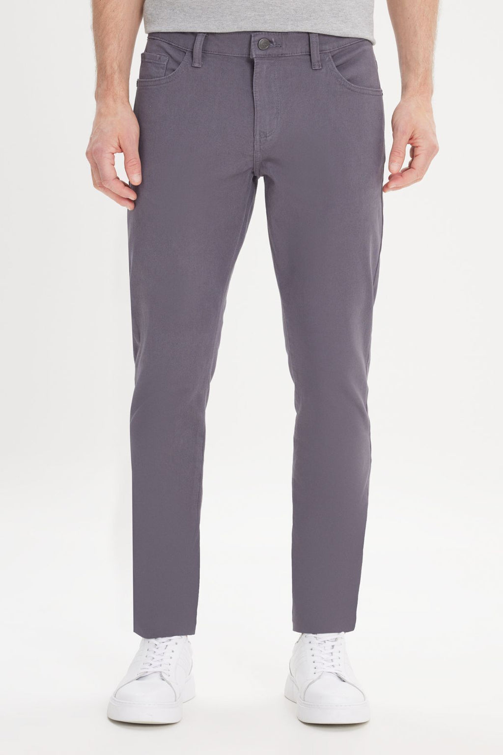 Men's anthracite slim fit narrow cut 5 pocket cotton canvas flexible chino pants
