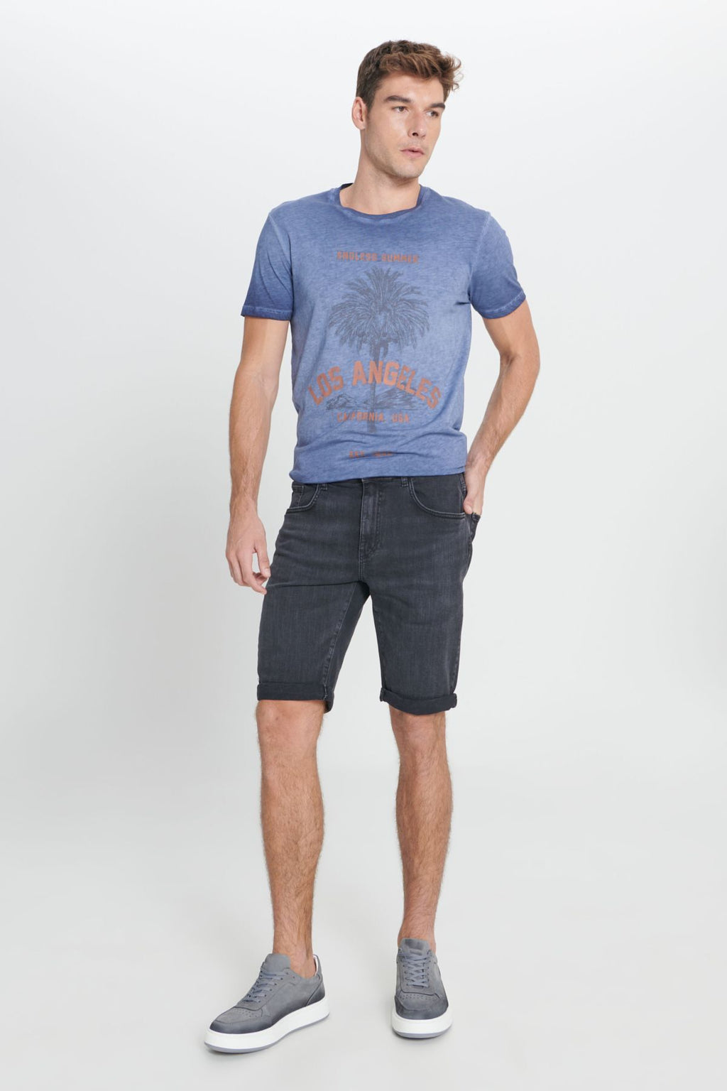 Men's anthracite slim fit narrow cut cotton flexible 5 pocket denim shorts