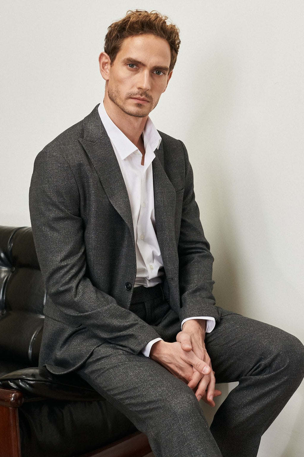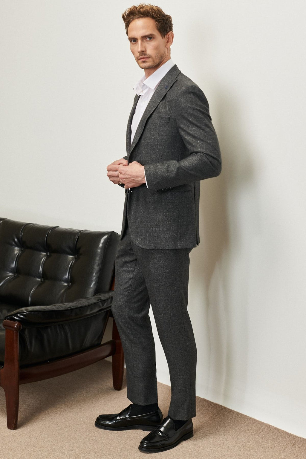 Men's anthracite slim fit narrow cut swallow collar patterned suit suits