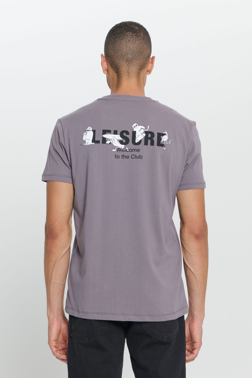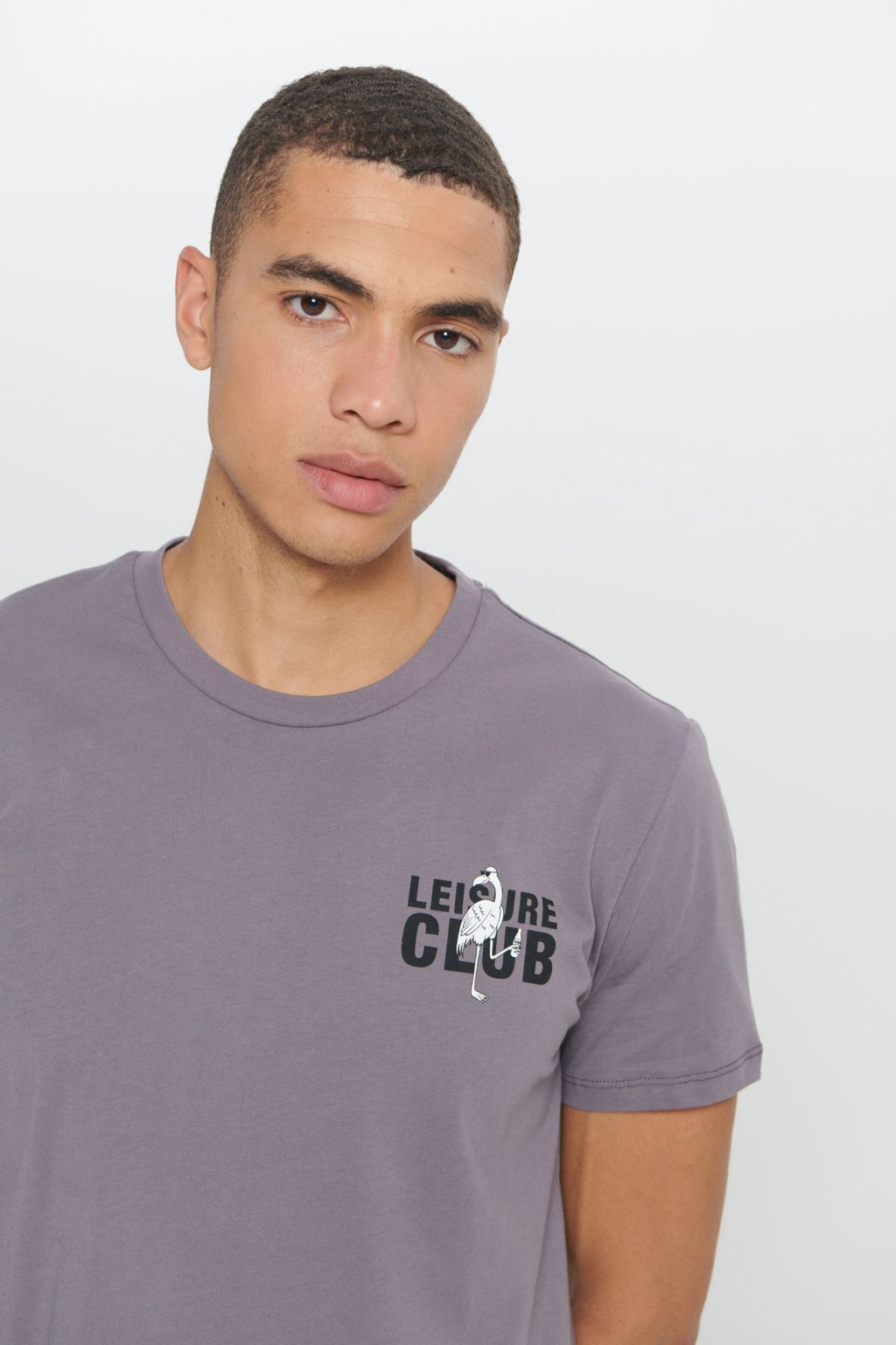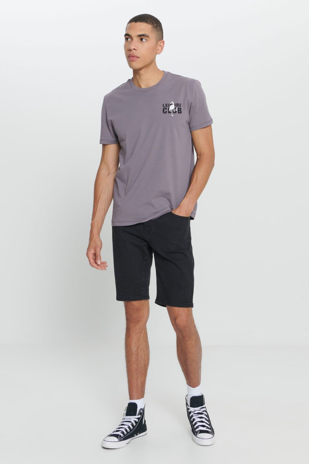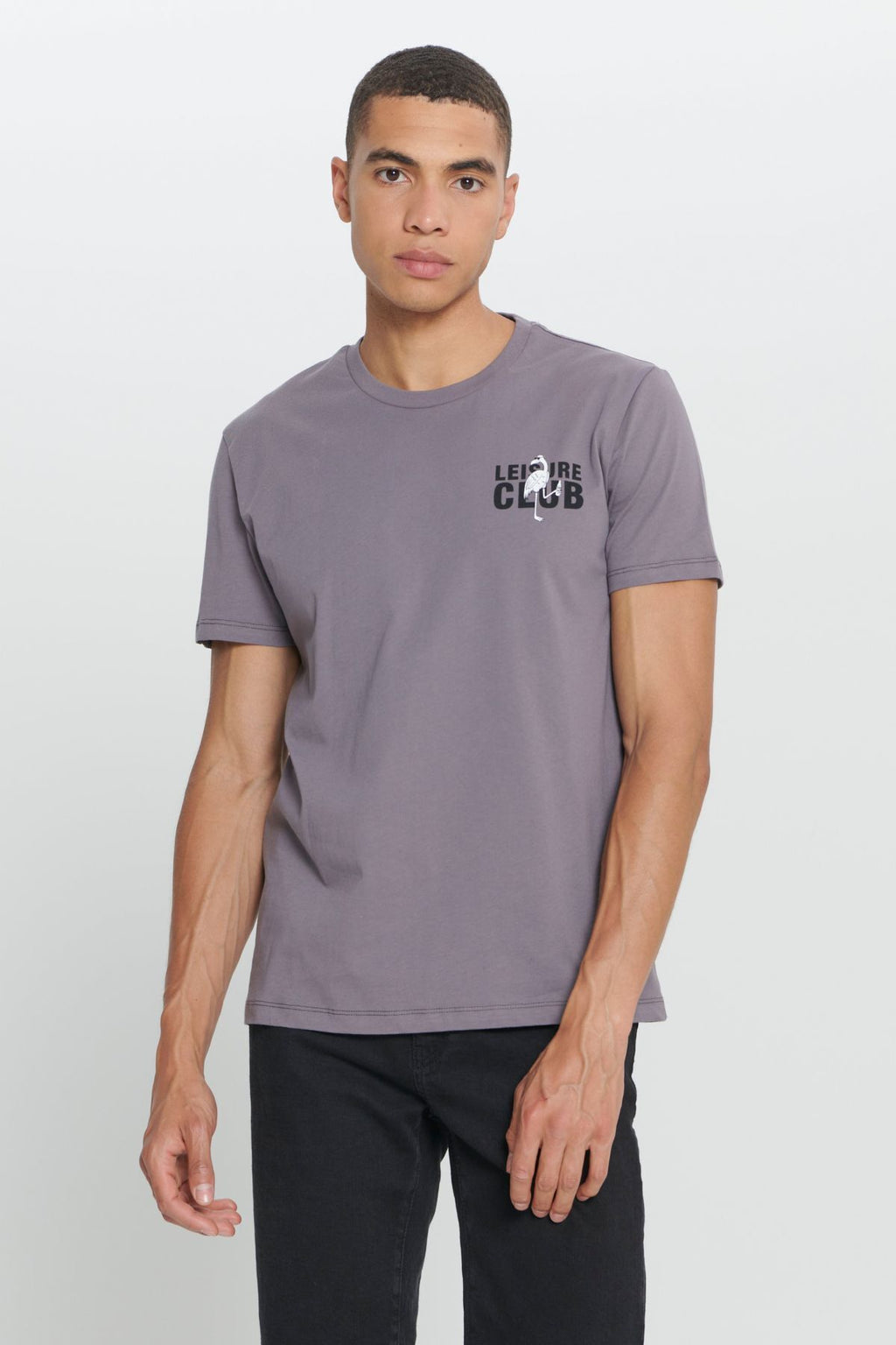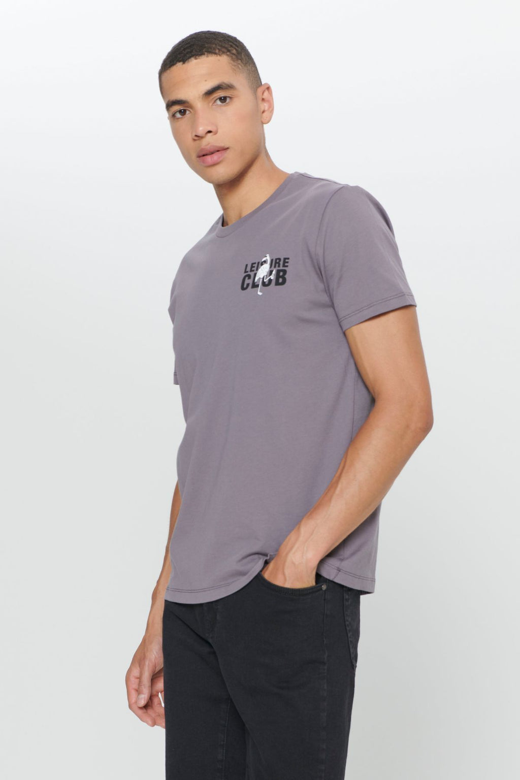Men's anthracite standard fit normal cut 100 %cotton printed bicycle collar T -shirt