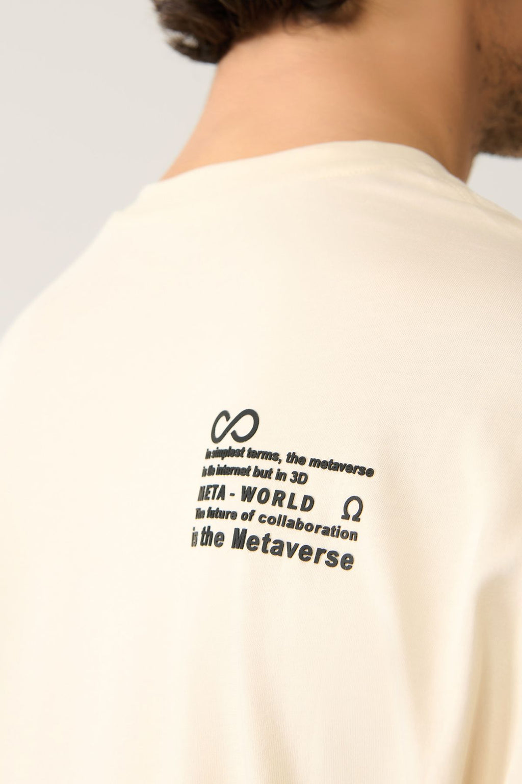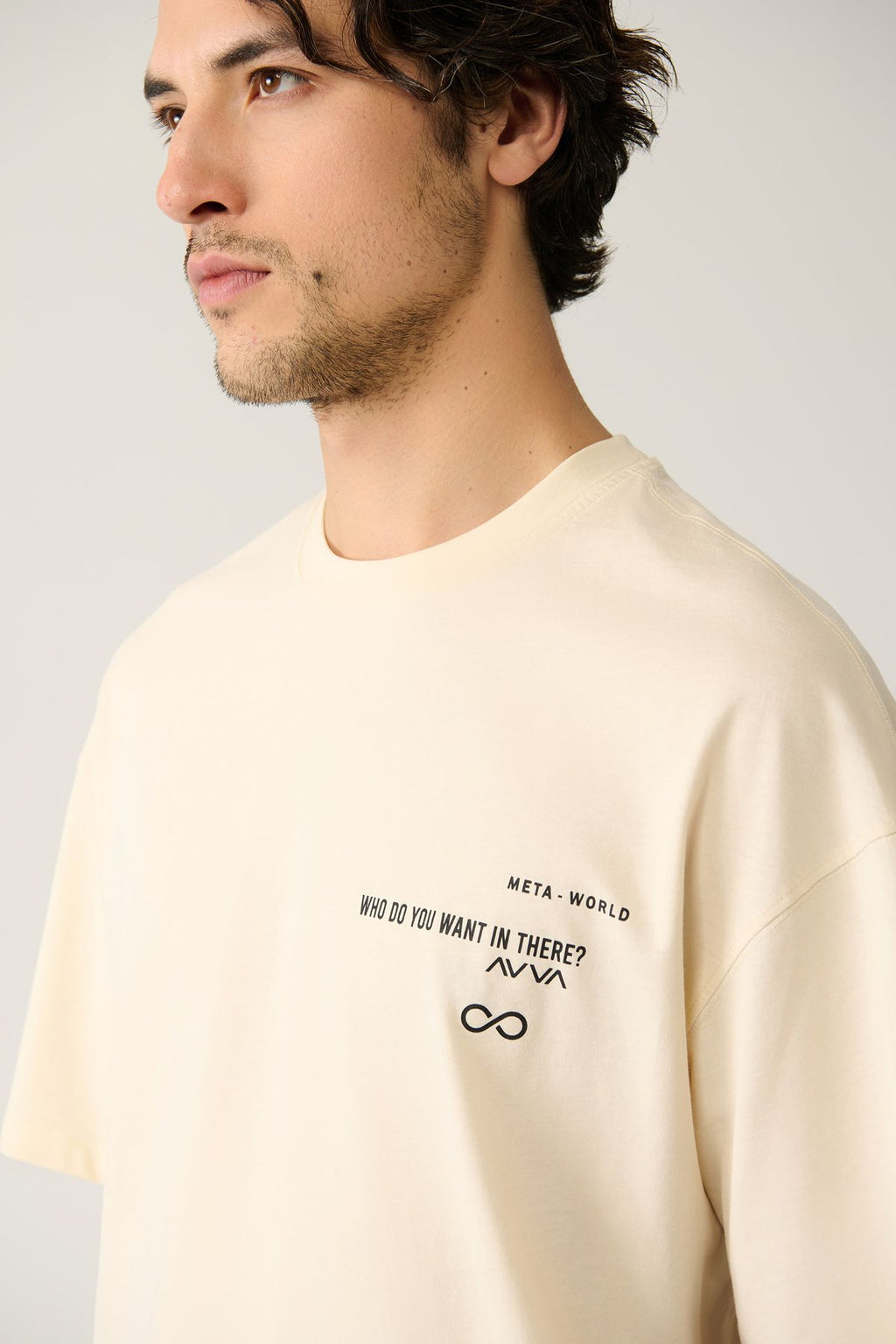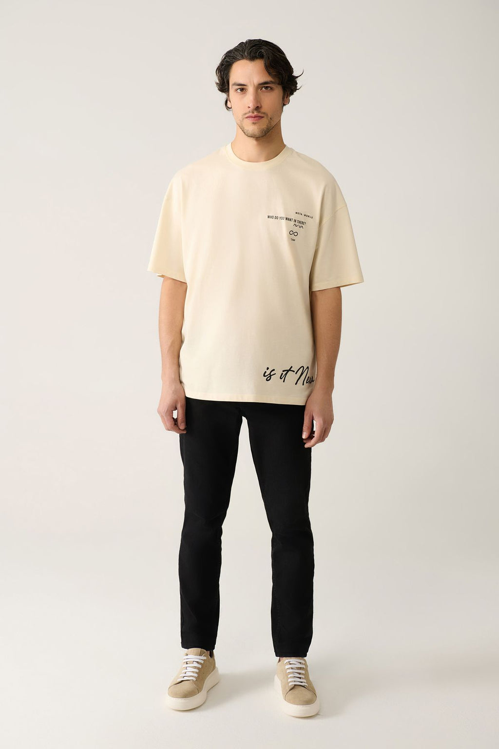 Men's Beige 100 %Cotton Bicycle Collar Printed Cotton T-shirt A41y1355