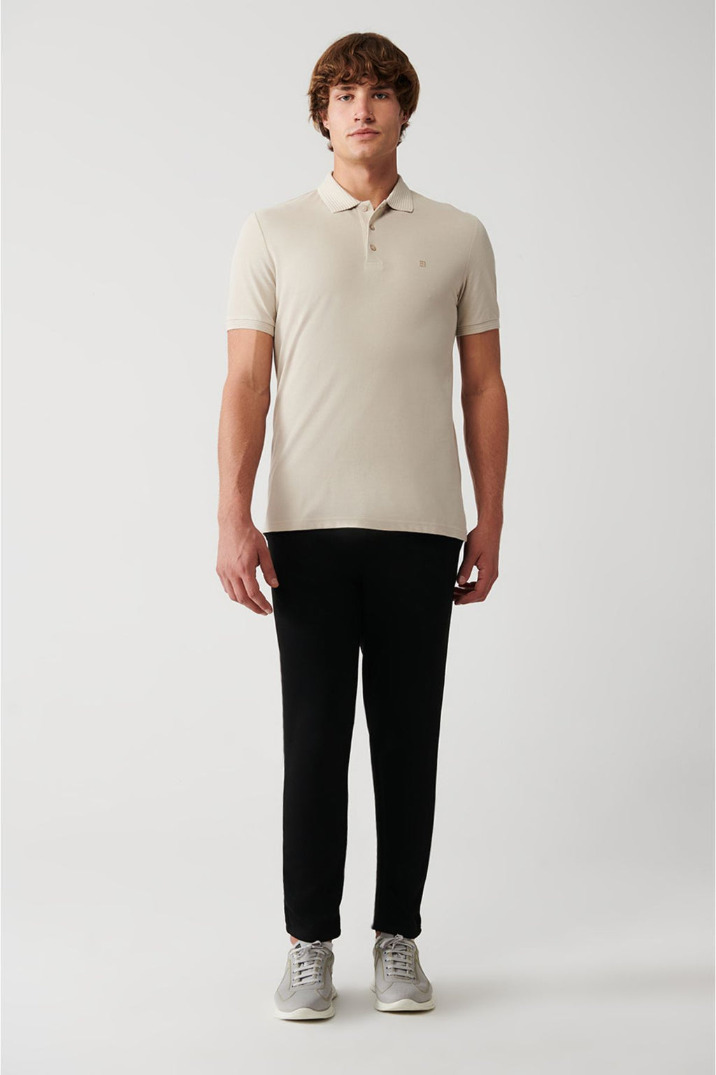 Men's beige 3 button 100 %corn cotton Polo Yaka T-shirt B001027