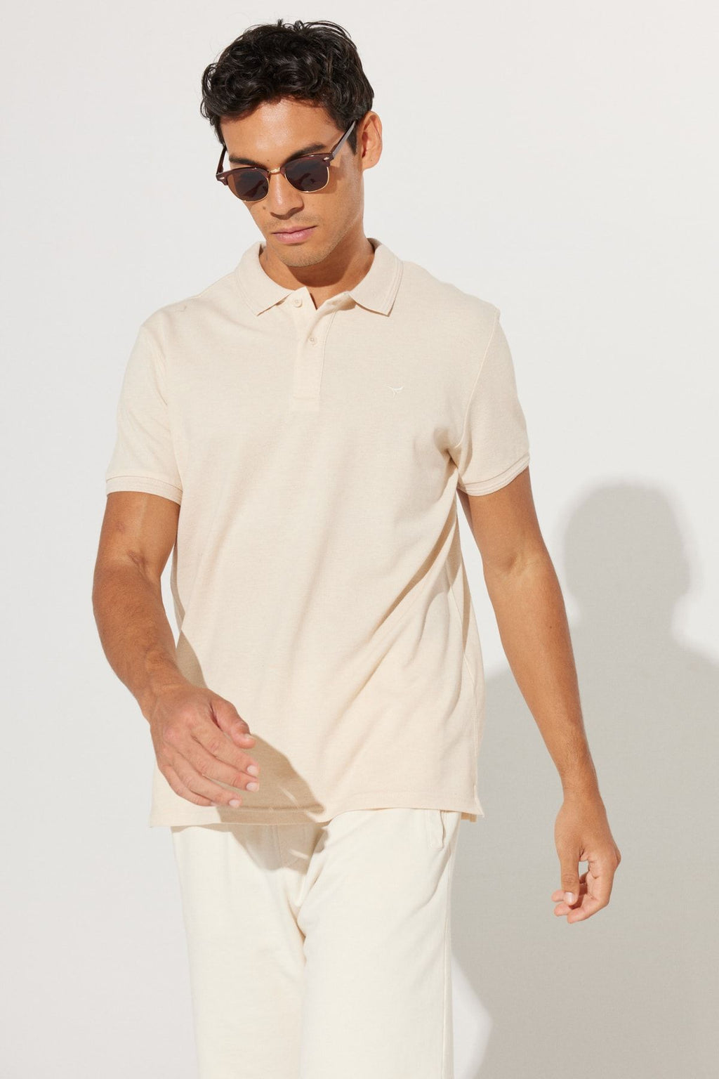 Men's Beige-Ekru Slim Fit Night Cut Polo Yaka 100 %Cotton T-shirt