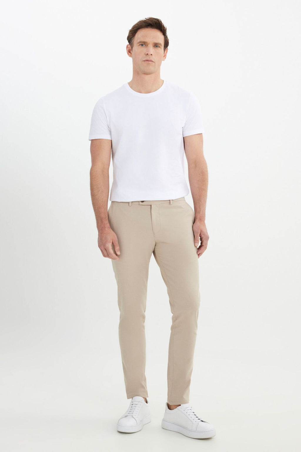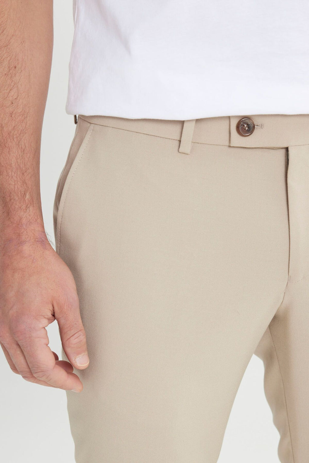 Men's Beige Slim Fit Italian Cutting Side Pocket Flexible Casual Pants