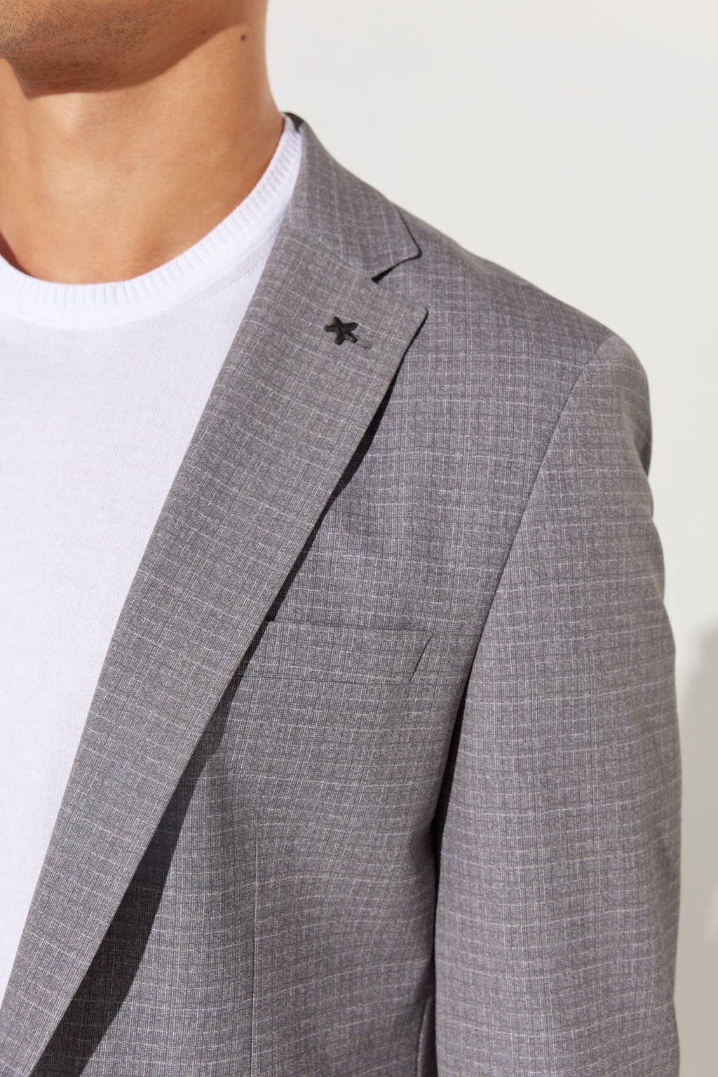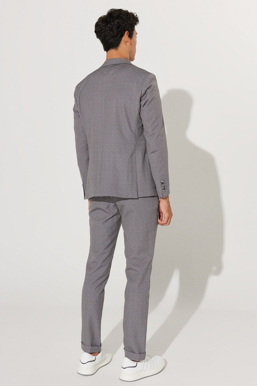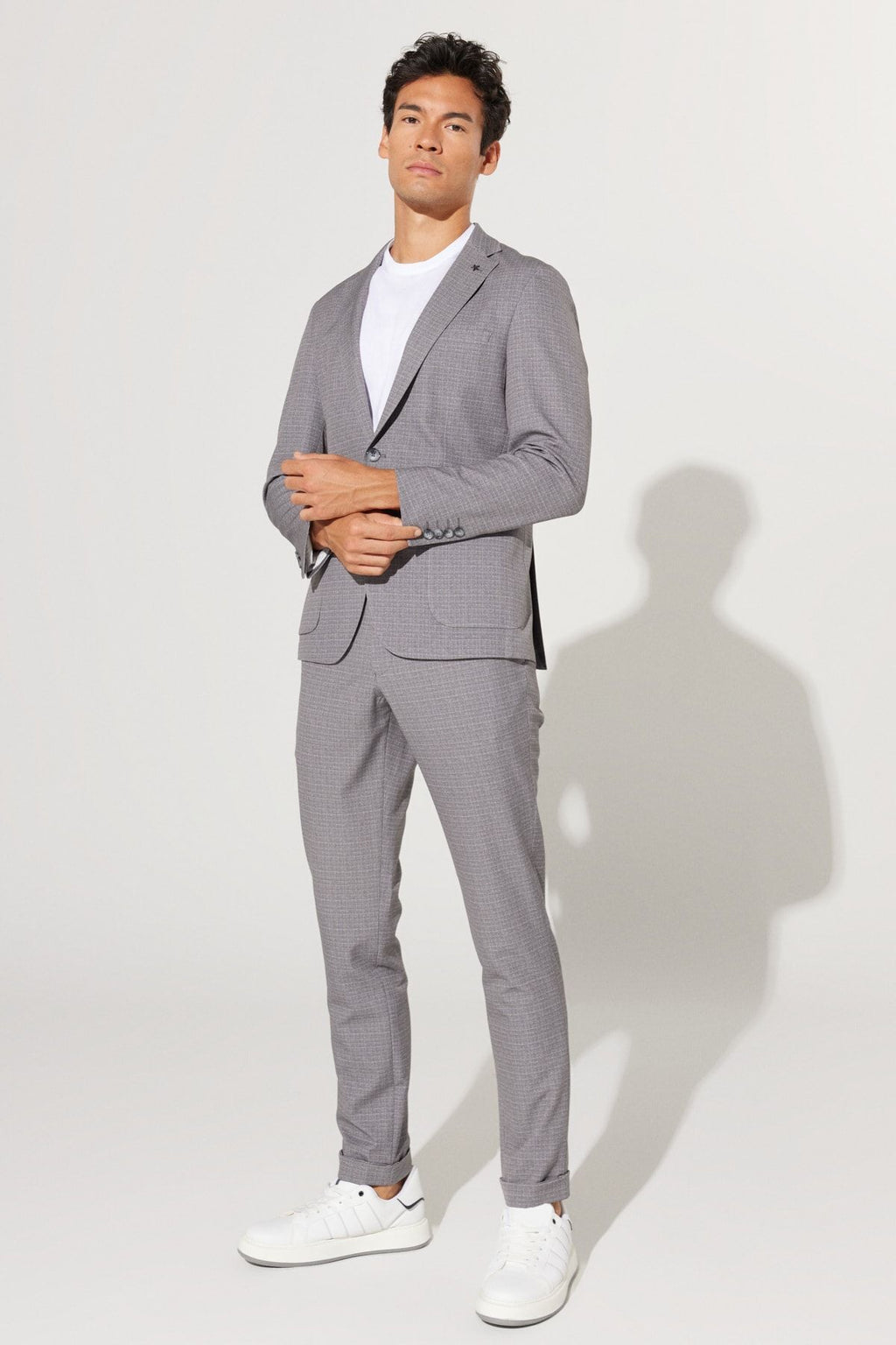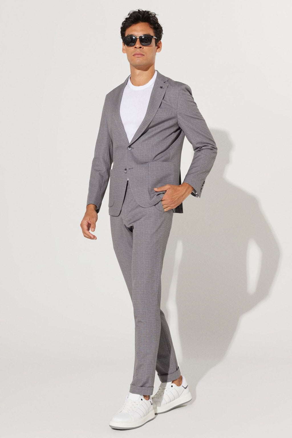 Men's Beige Slim Fit Narrow Cut Mono Neck Patterned Travel Bag Suit
