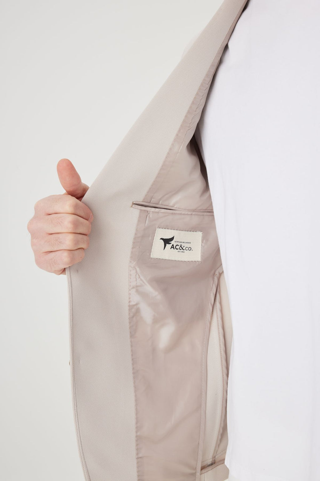 Men's Beige Slim Fit Narrow Cut Mono Yaka Casual Blazer Jacket