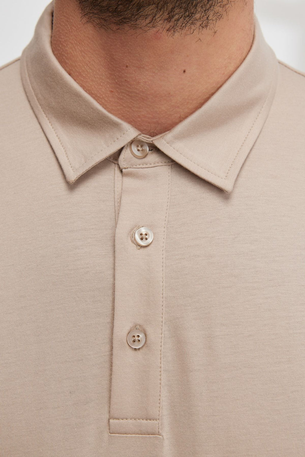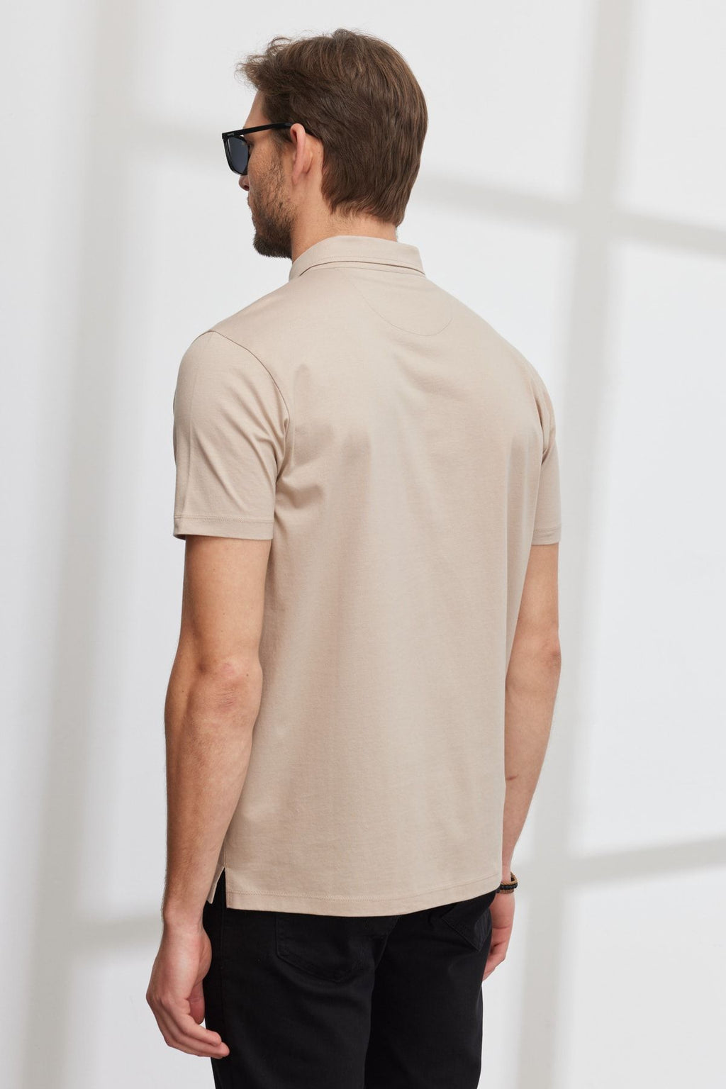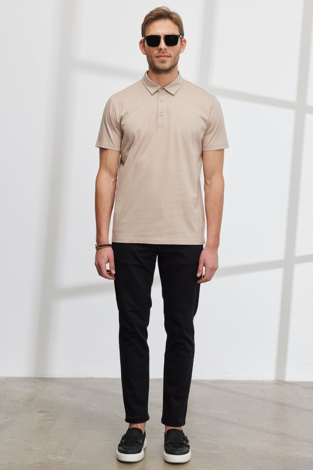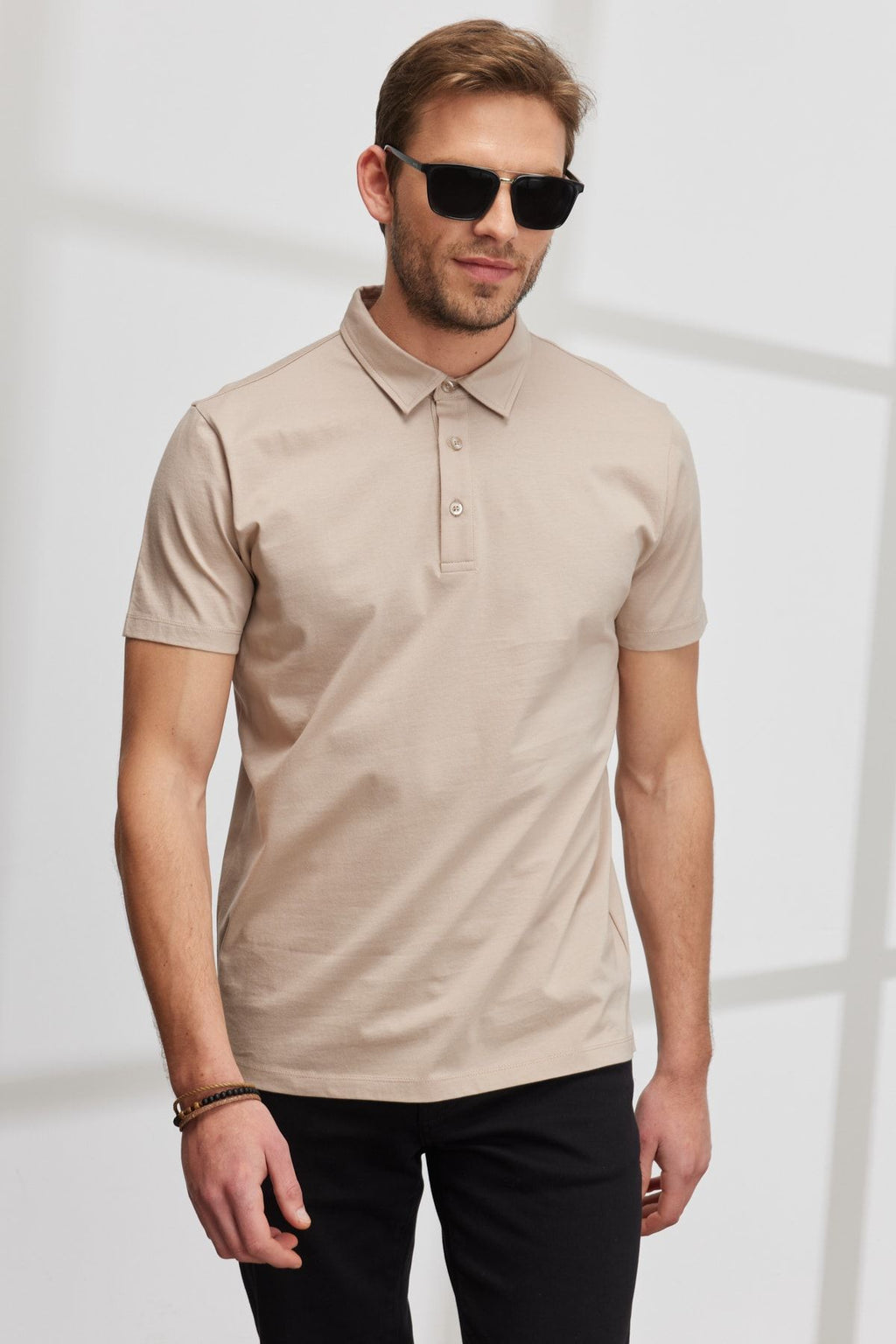 Men's beige slim fit narrow cut polo collar 100 %cotton T -shirt
