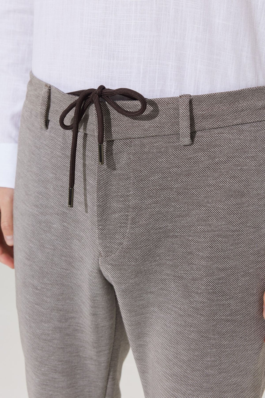 Men's Beige Slim Fit Narrow Cutted Bird Bird Patterned Waist Tied Jogger Pants