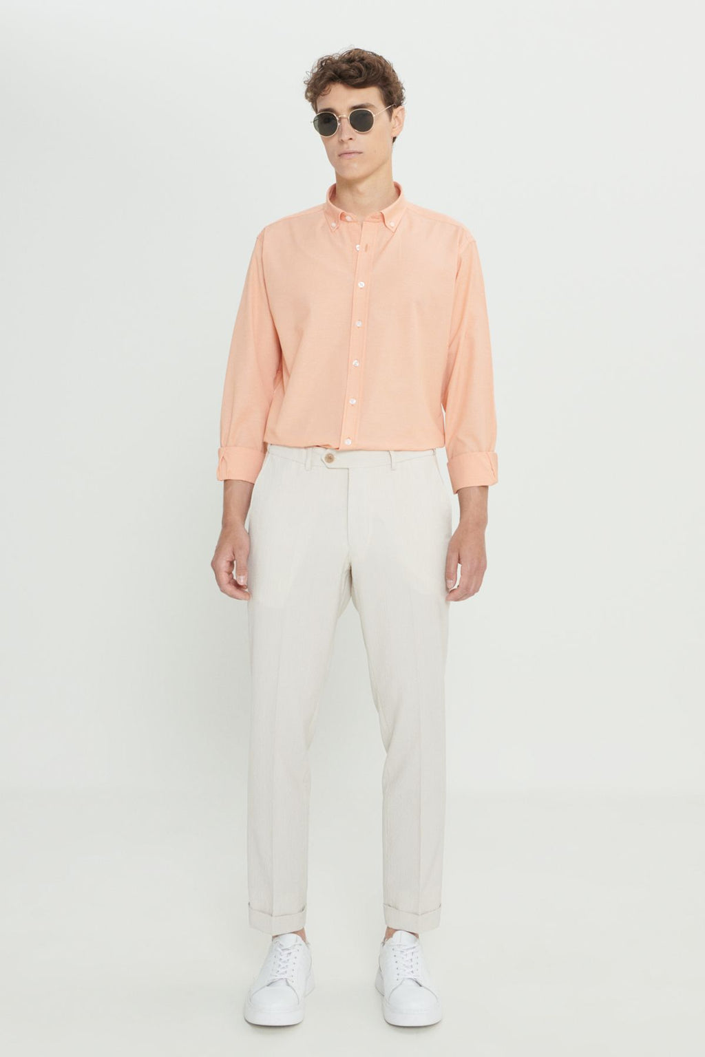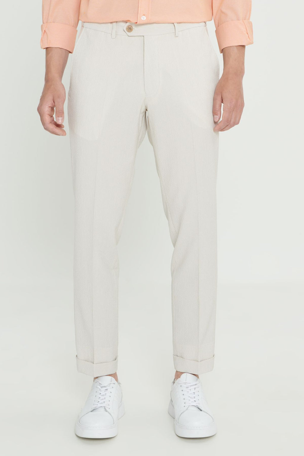 Men's Beige Slim Fit Narrow Cutter Wrinkling Fabric Wafer Patterned Pants