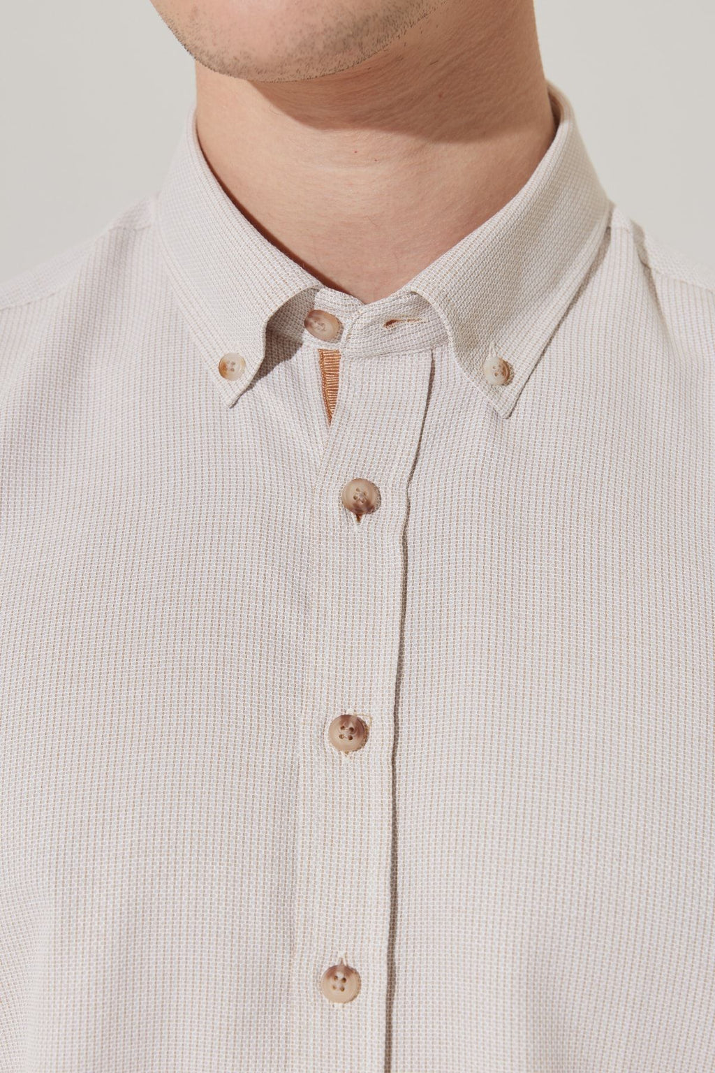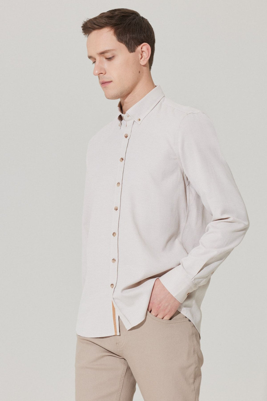 Men's Beige Slim Fit Narrow Cutting Buttoned Cotton Cotton Amelor Shirt