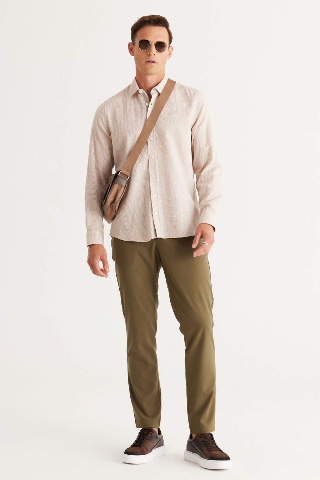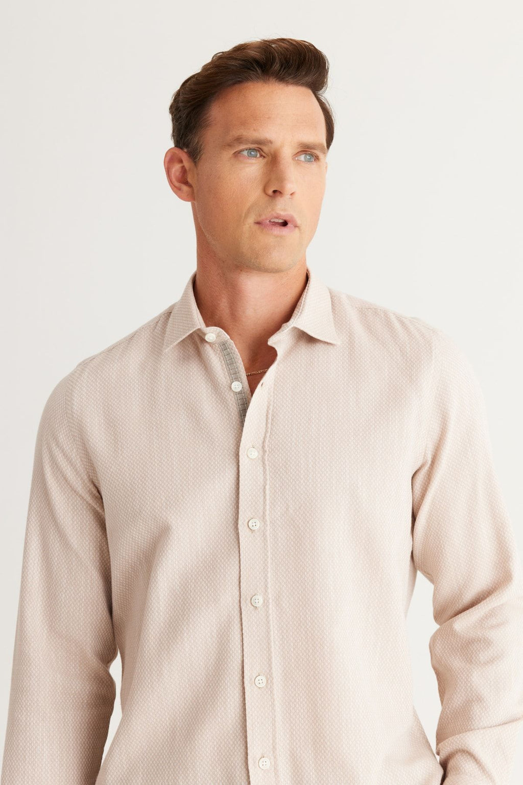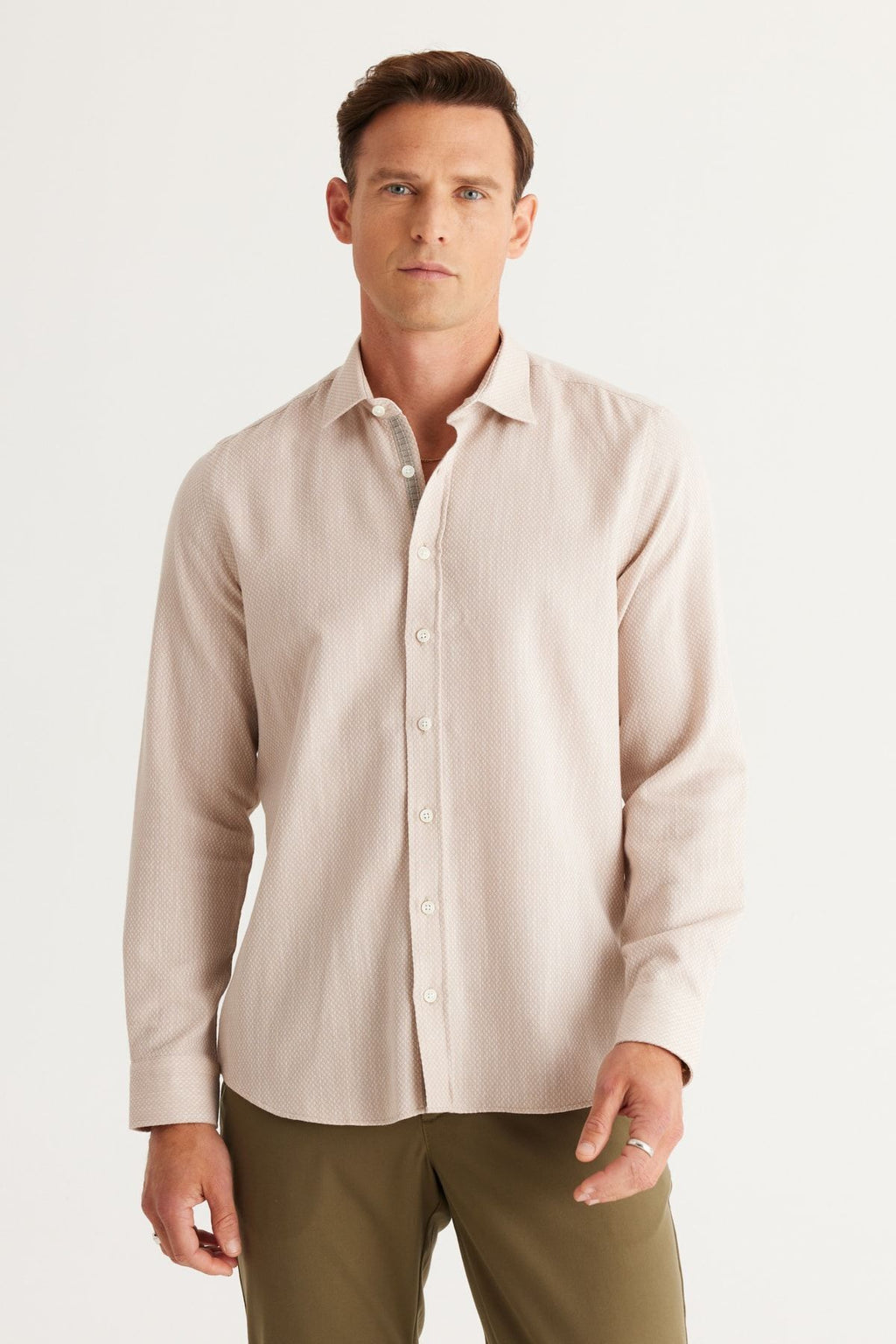 Men's Beige Slim Fit Night Cut Classic Collar 100 %Cotton Amelor Shirt
