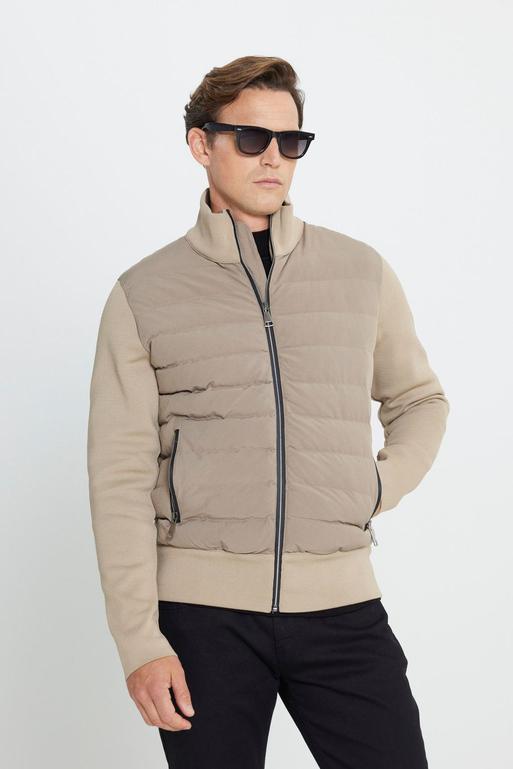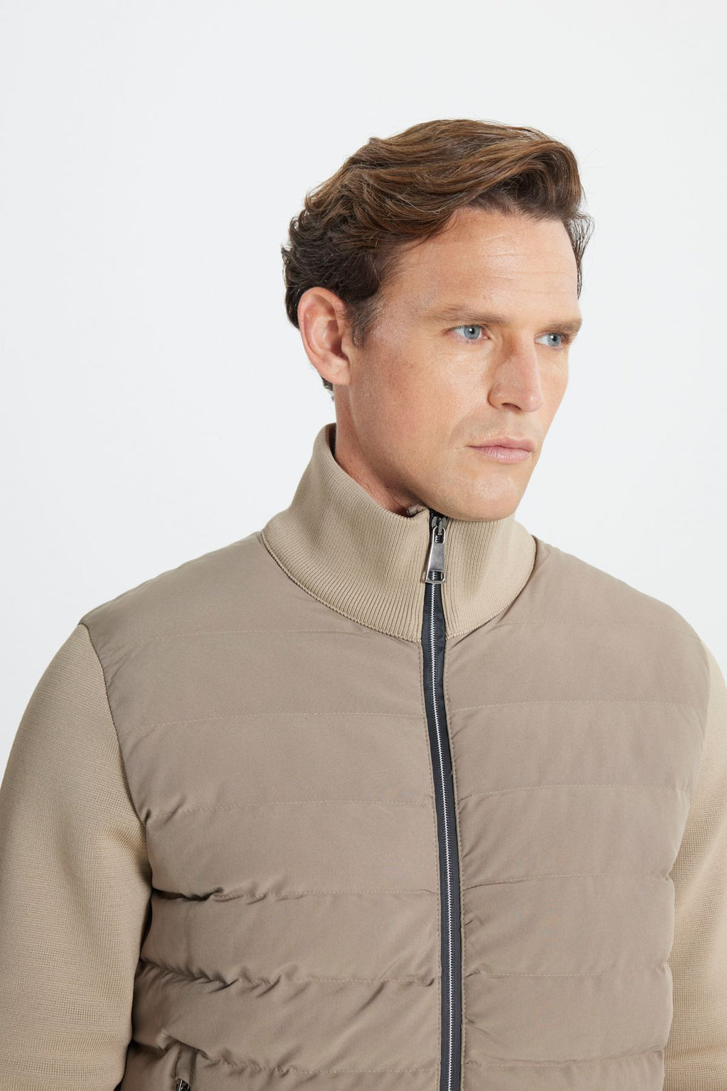Men's beige standard fit normal cut upright collar coat