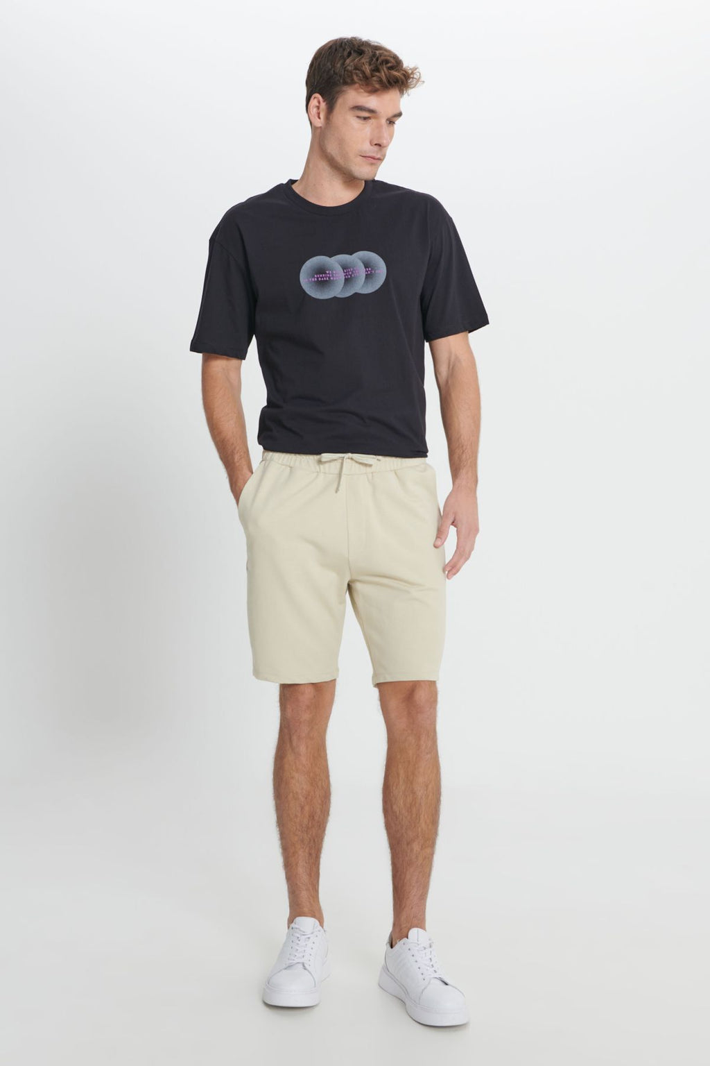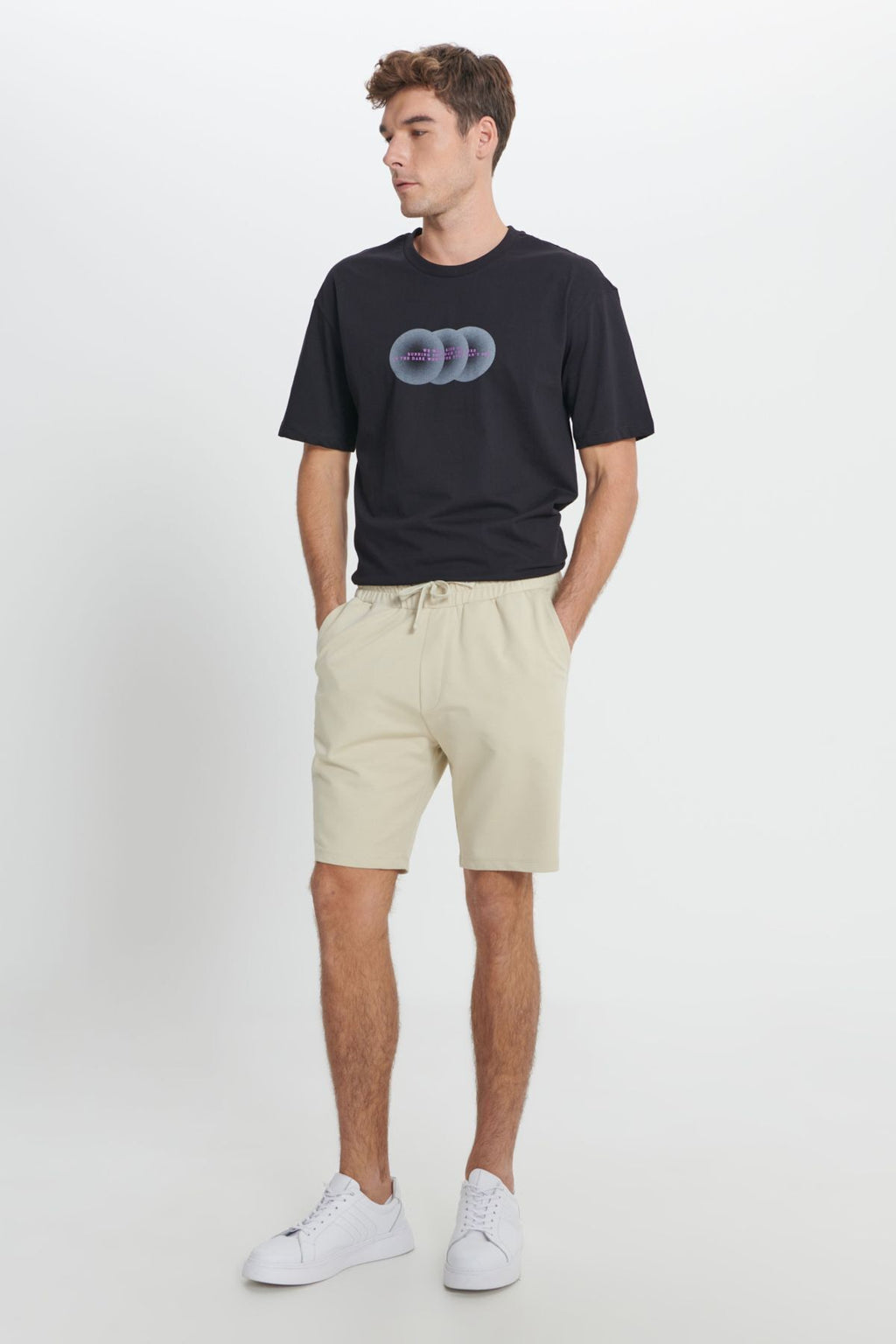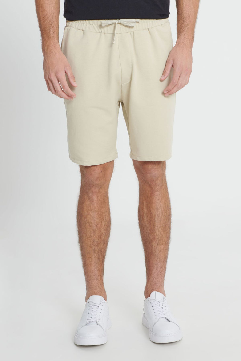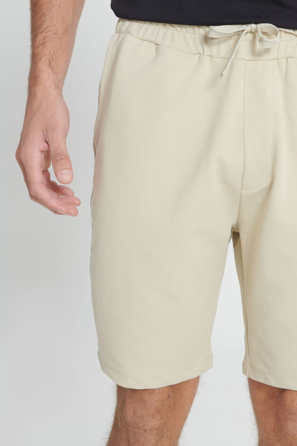 Men's Beige Standard Fit Normal Cutting Cotton Pocket Knitting Shorts