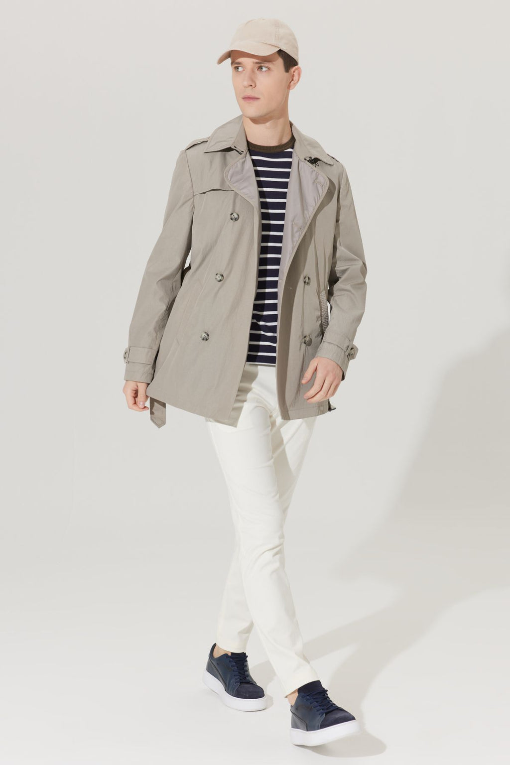 Men's Beige Standard Fit Normal Cutting Trench coat