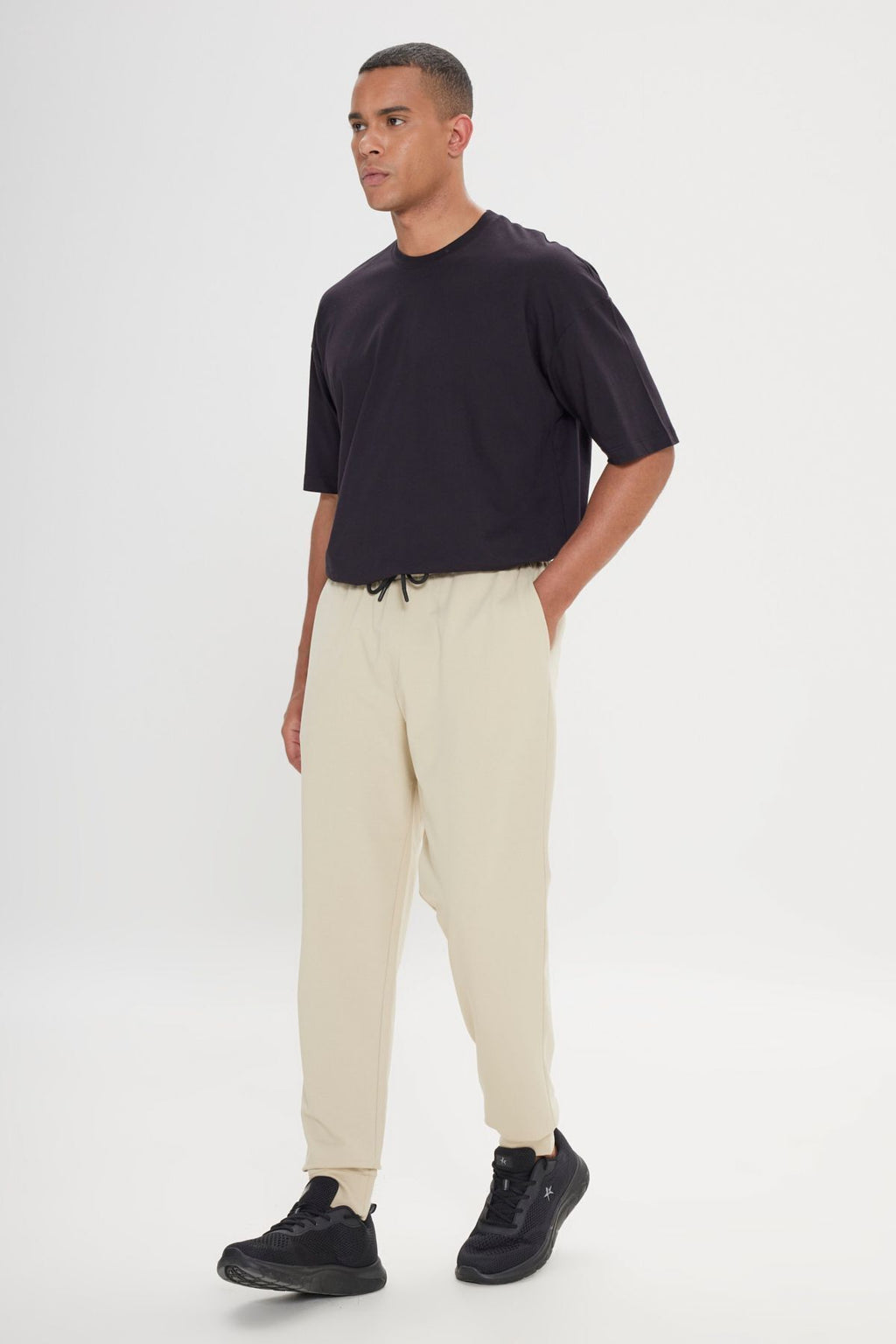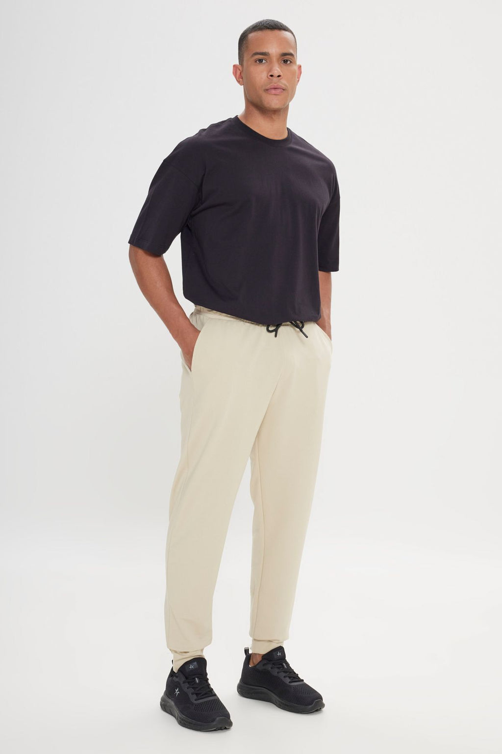 Men's Beige Standard Fit Normal Normal Cut Waist and Paçası Tire Casual Sports Service Six