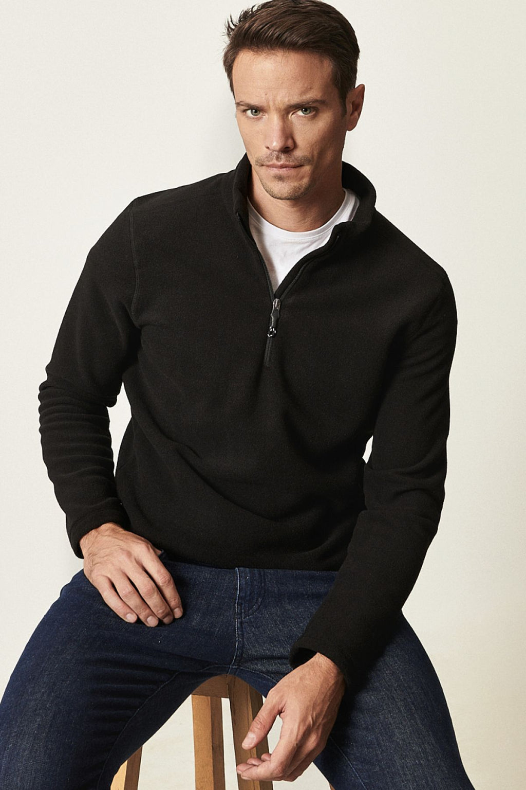 Men's Black Anti-Pilling Flash Standard Fit Pllage Solder Cold-proof Polar Sweatshirt