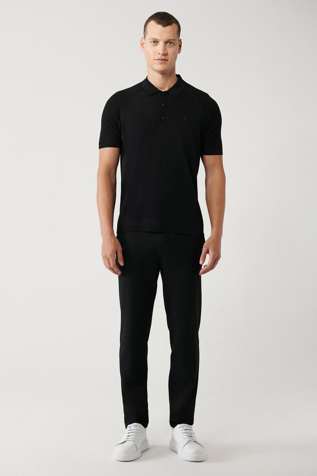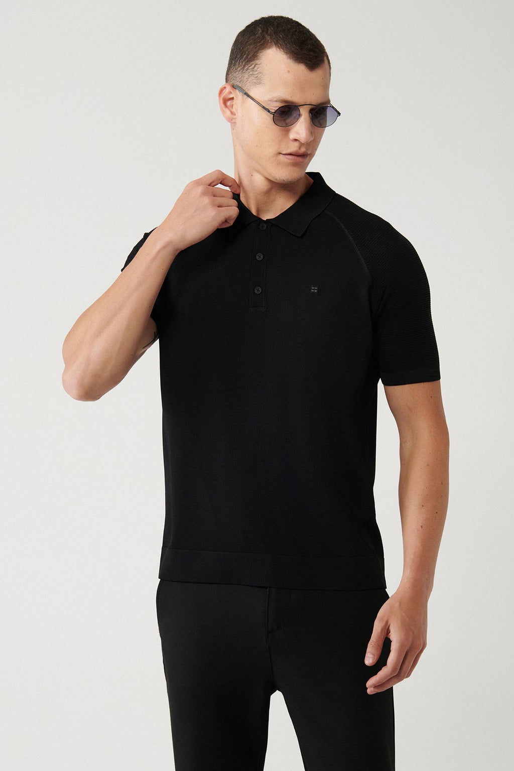 Men's black arms knitting detailed rayon knitwear t-shirt A32y5018