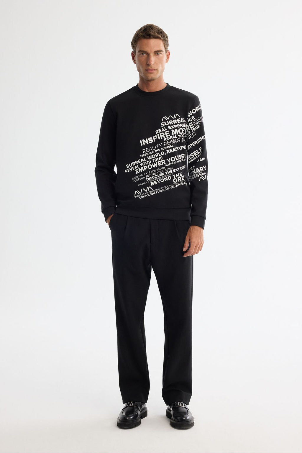 Men's Black Bicycle Collar Printed Elastan Sweatshirt A42Y1285