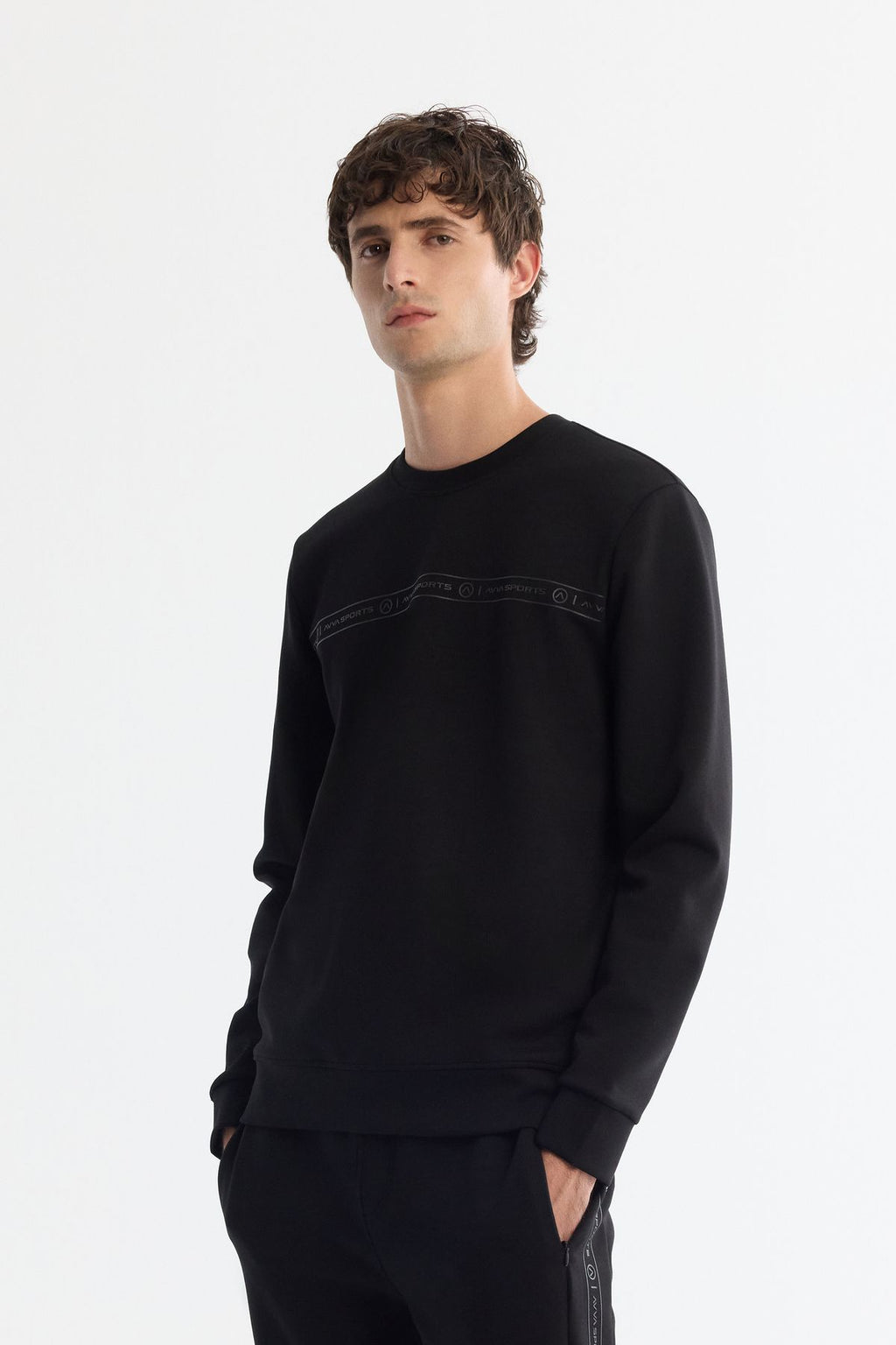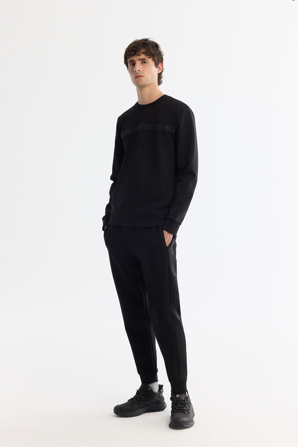 Men's Black Bicycle Collar Printed Elastan Sweatshirt A42y1308