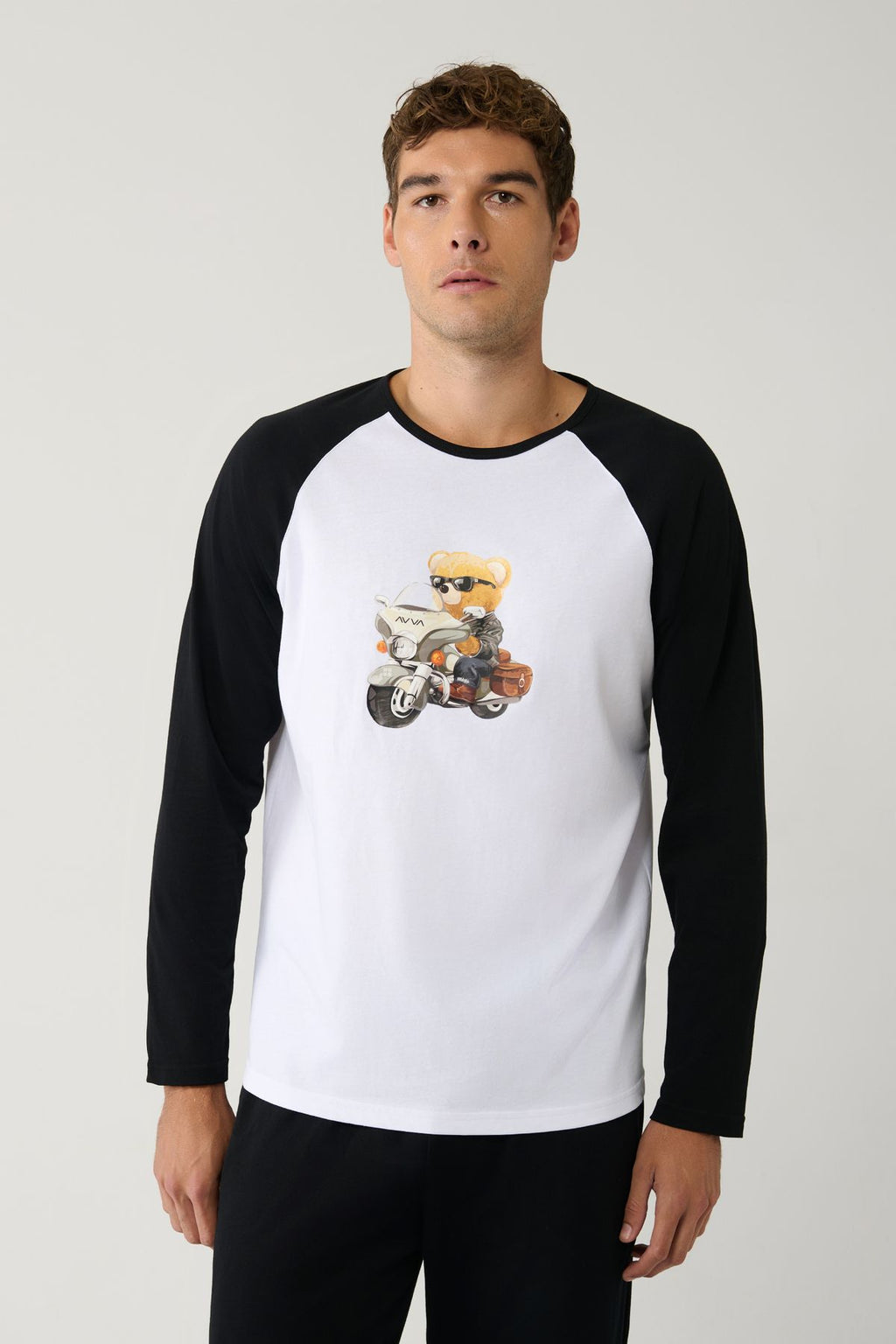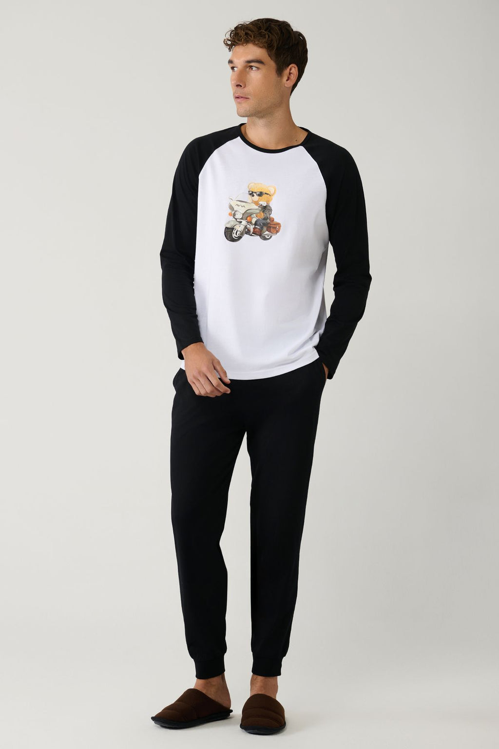 Men's black bike collar 100 %cotton printed special box pajama set E003311