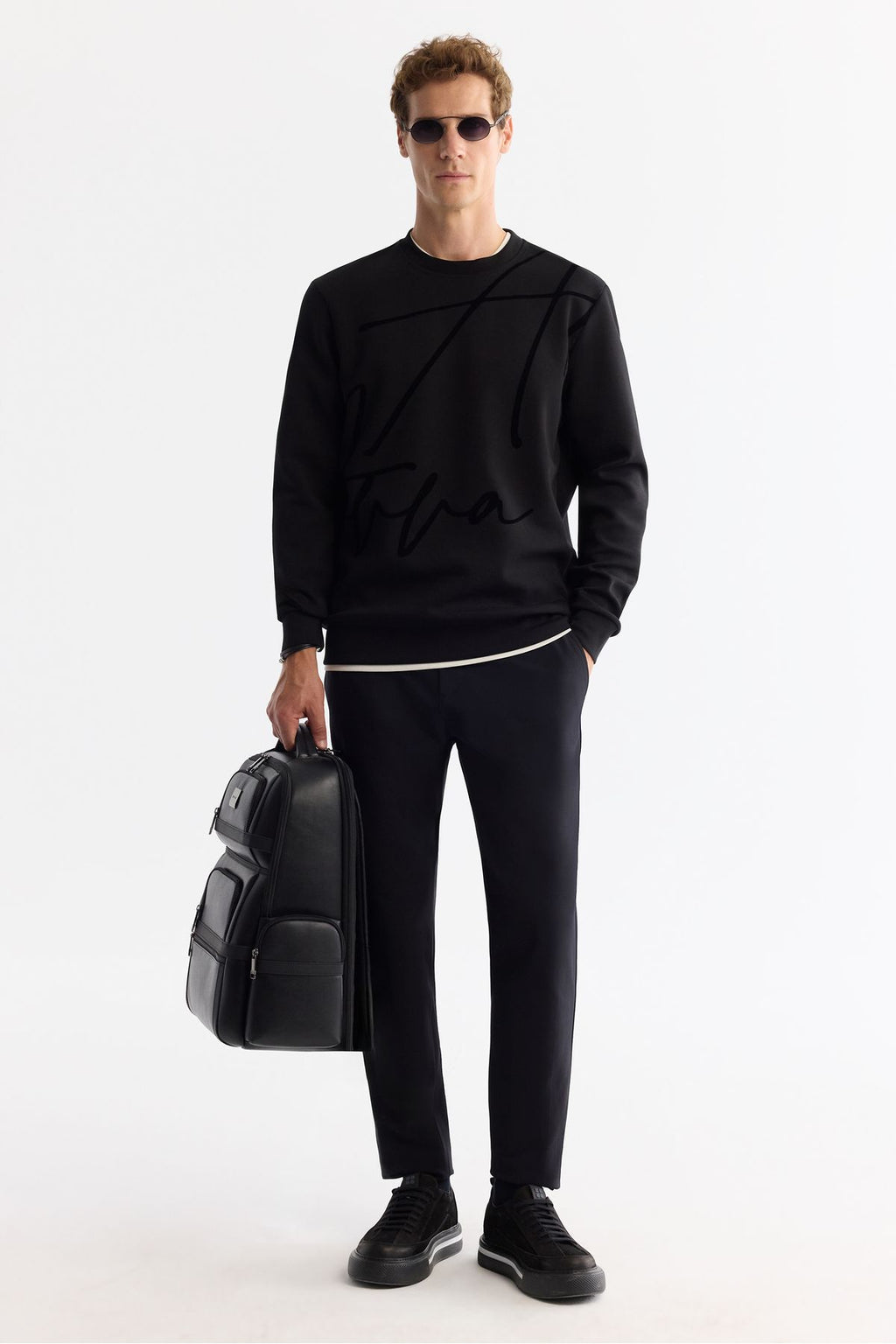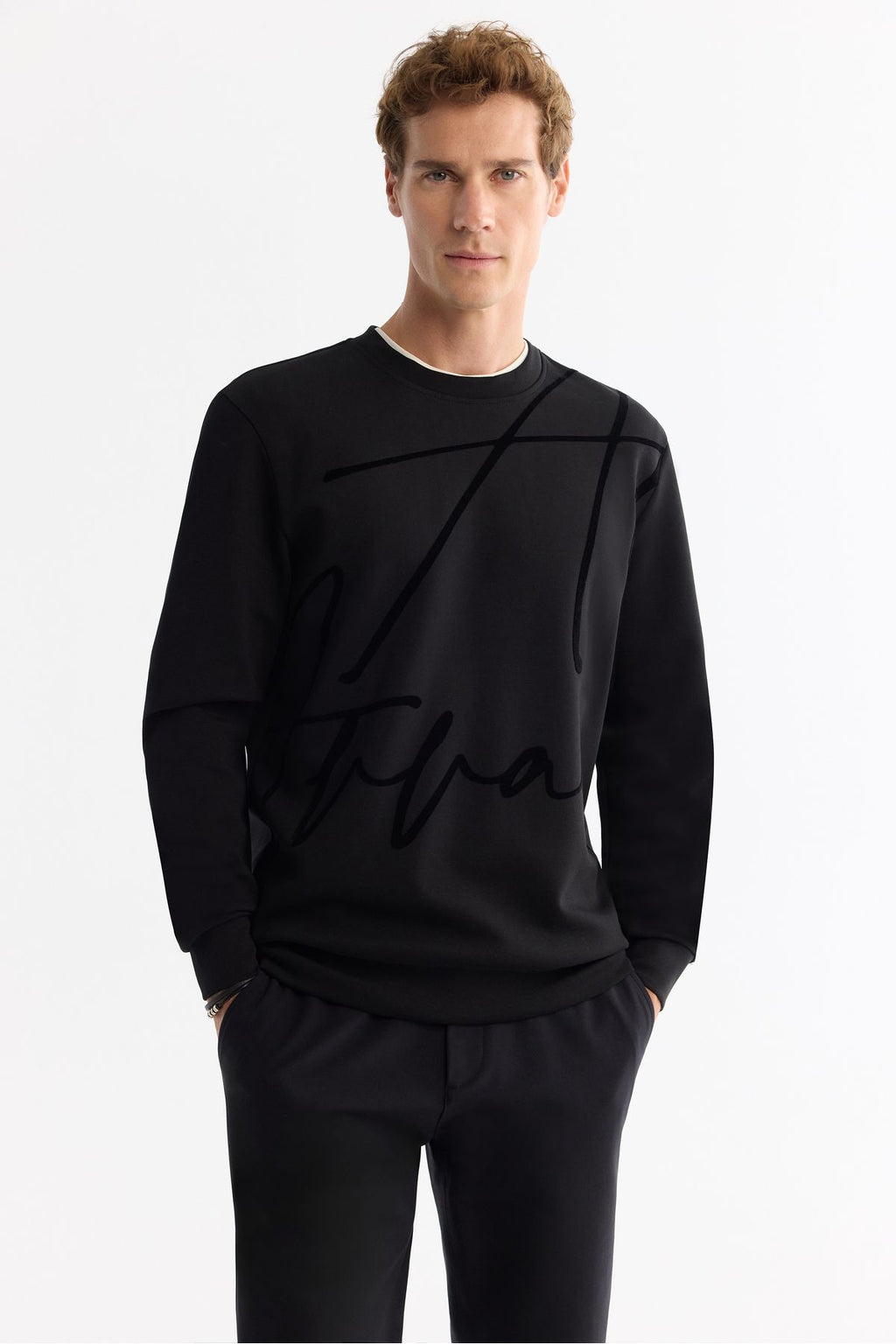 Men's black bike collar cotton printed elastan sweatshirt a42y1268