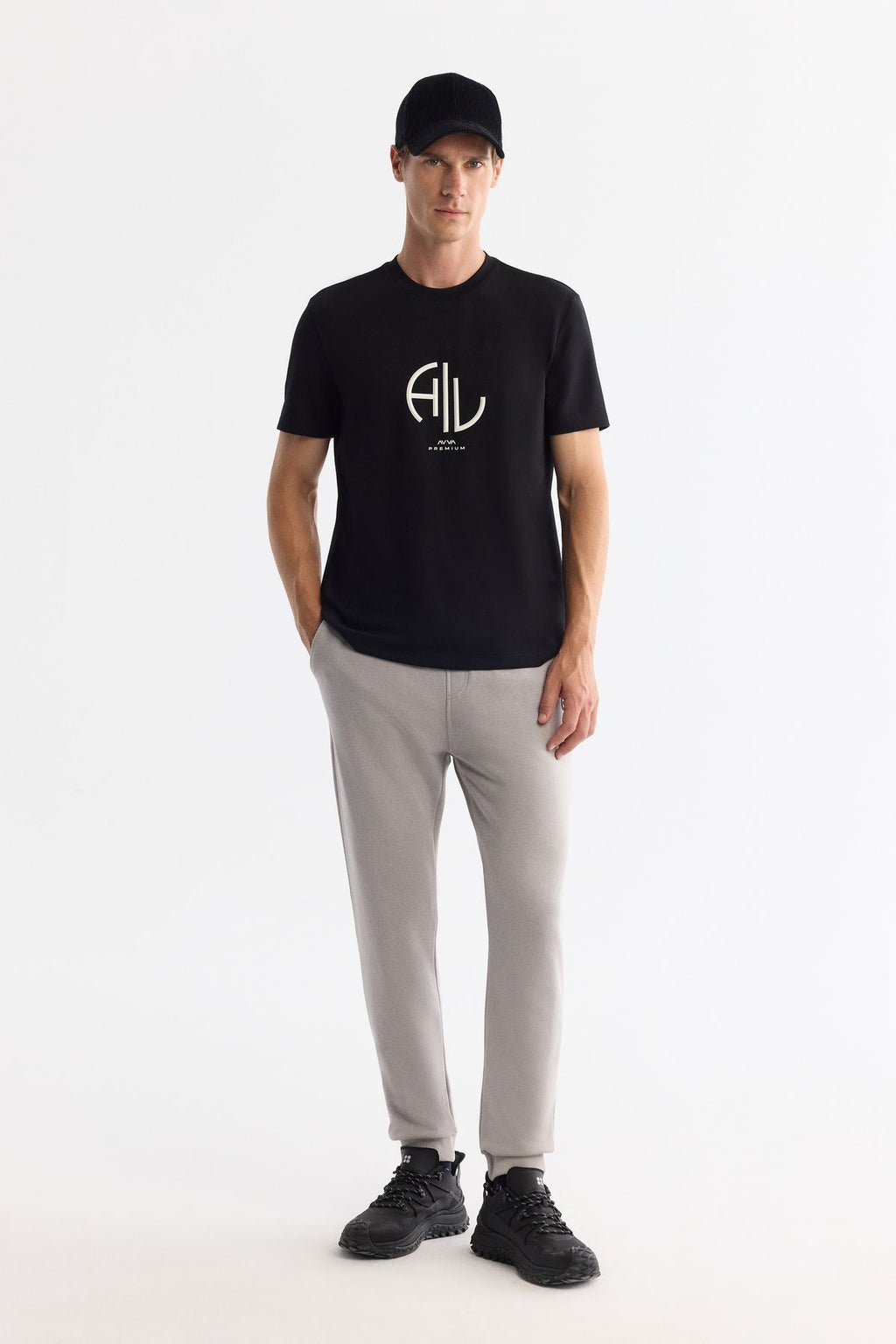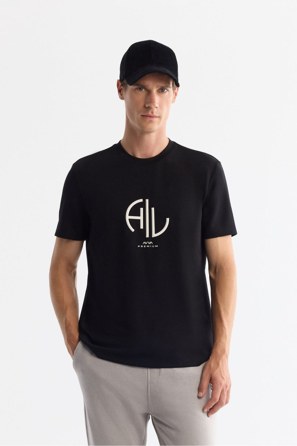 Men's black bike collar Elastan Interlok T-shirt A42y1001