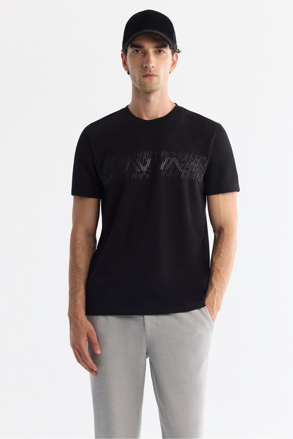 Men's black bike collar interlok elastan t-shirt a42y1005