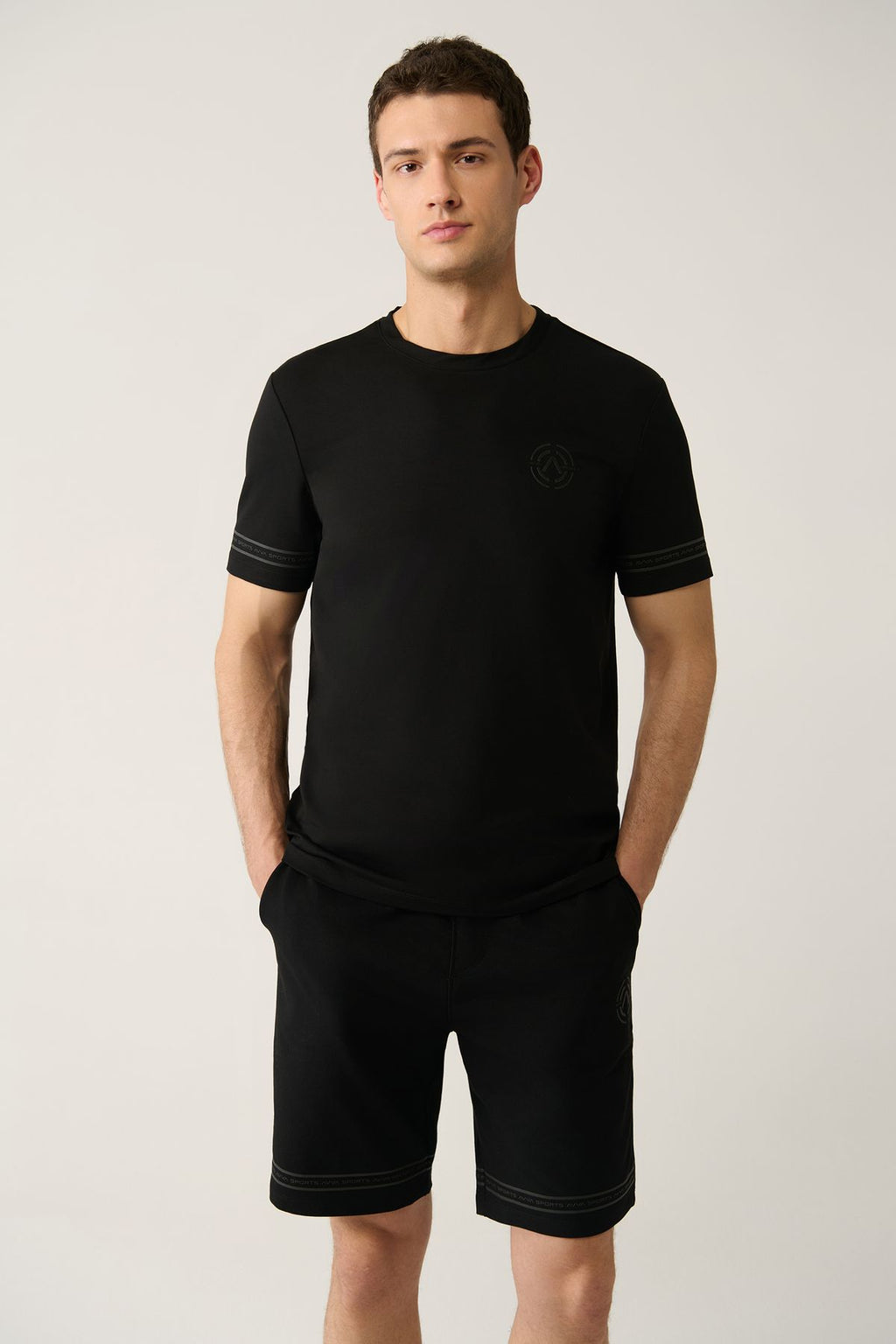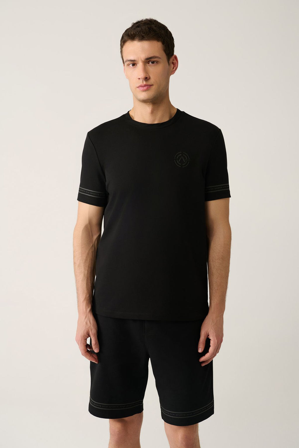 Men's black bike collar jersey fabric printed t-shirt A41y1107