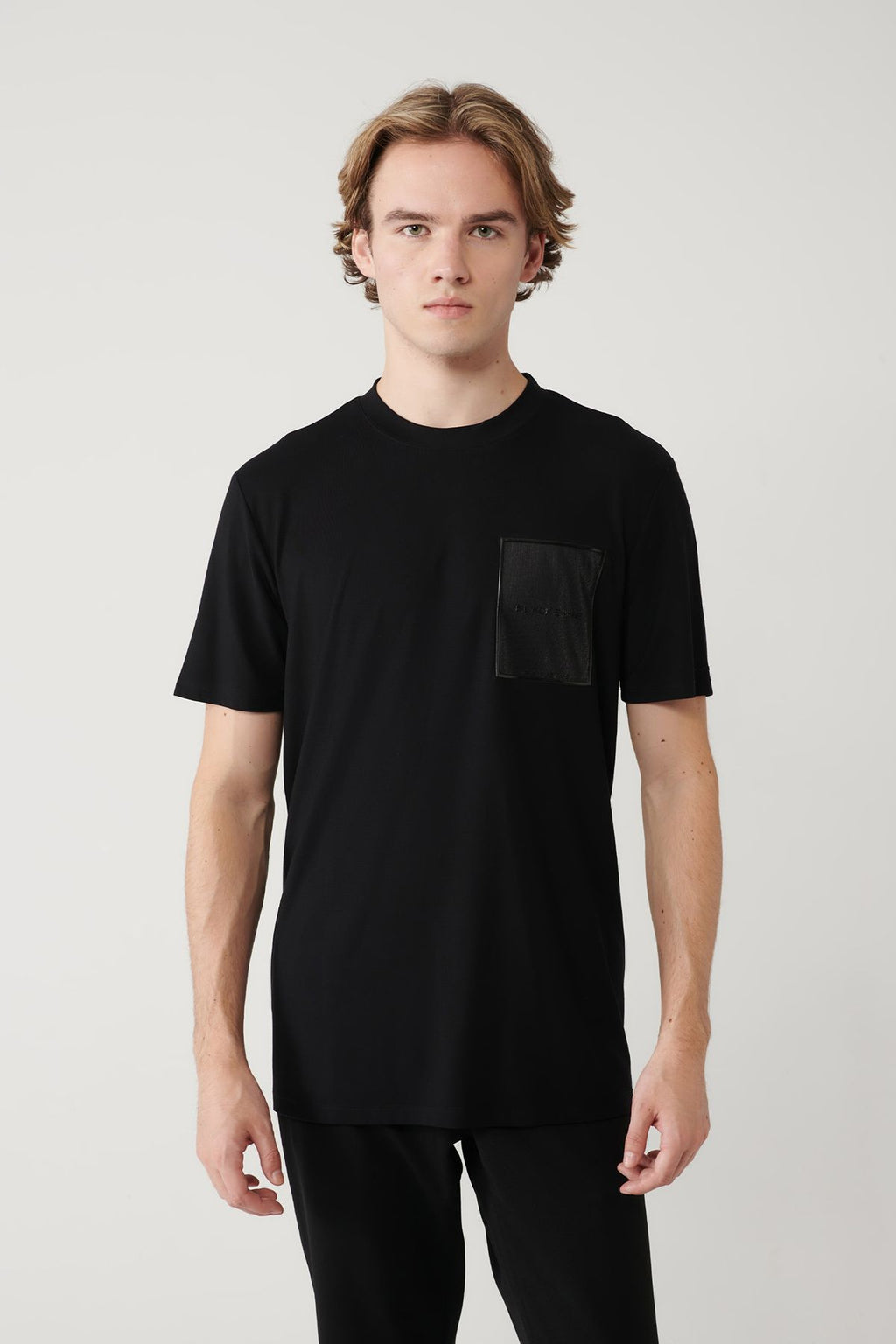 Men's black bike collar printed soft touch t-shirt A41y1010