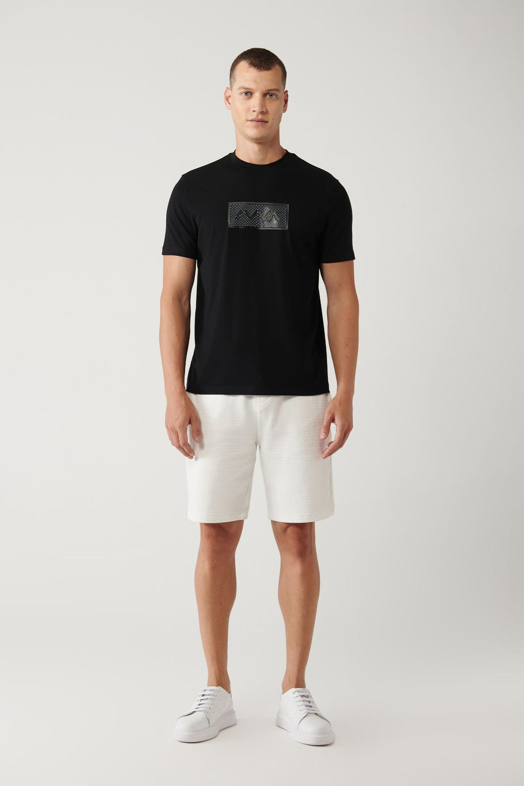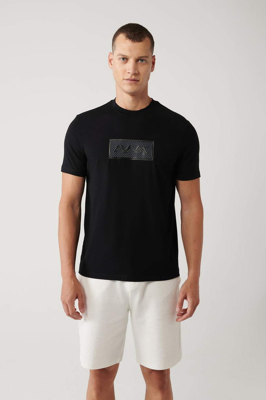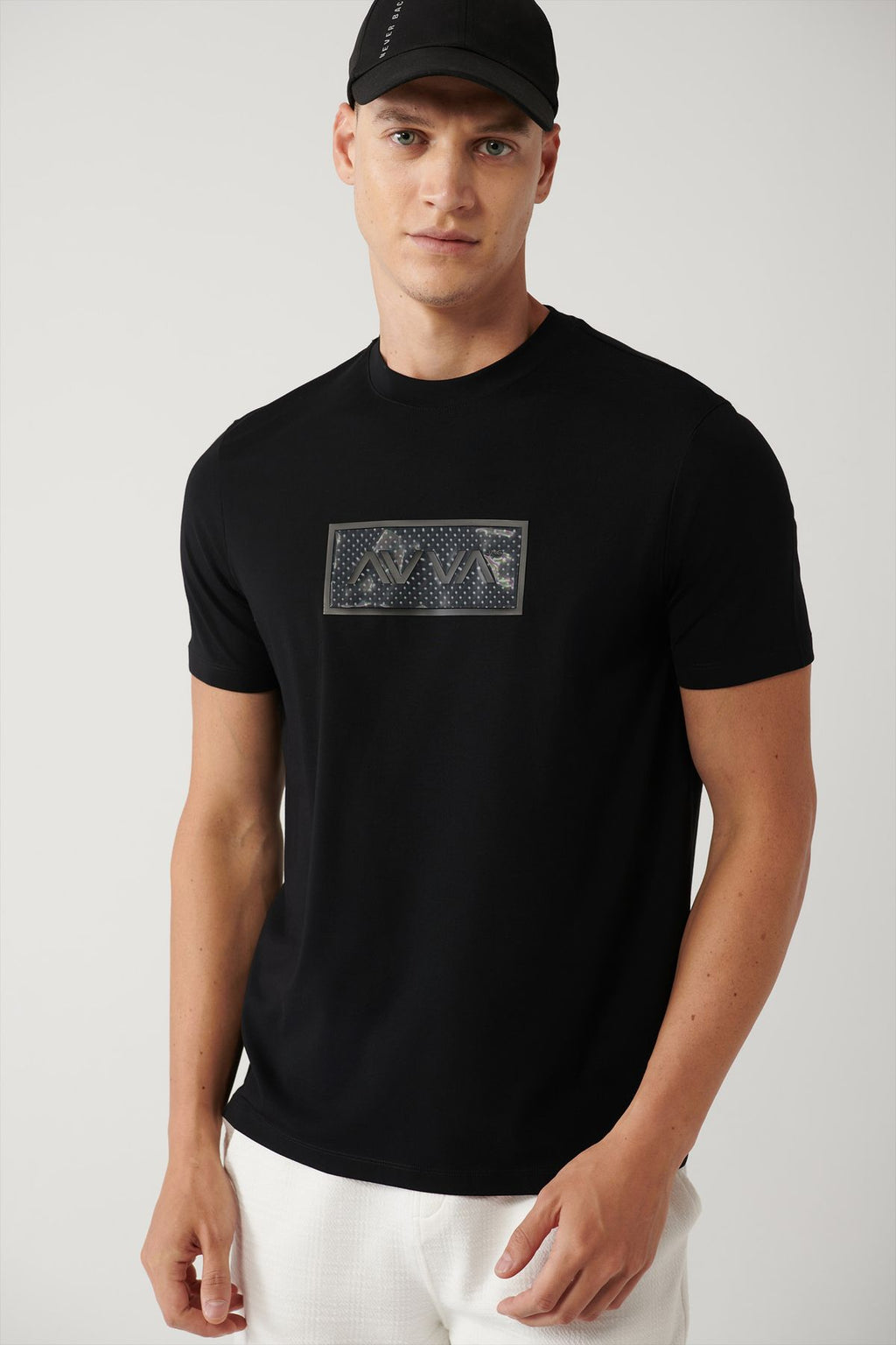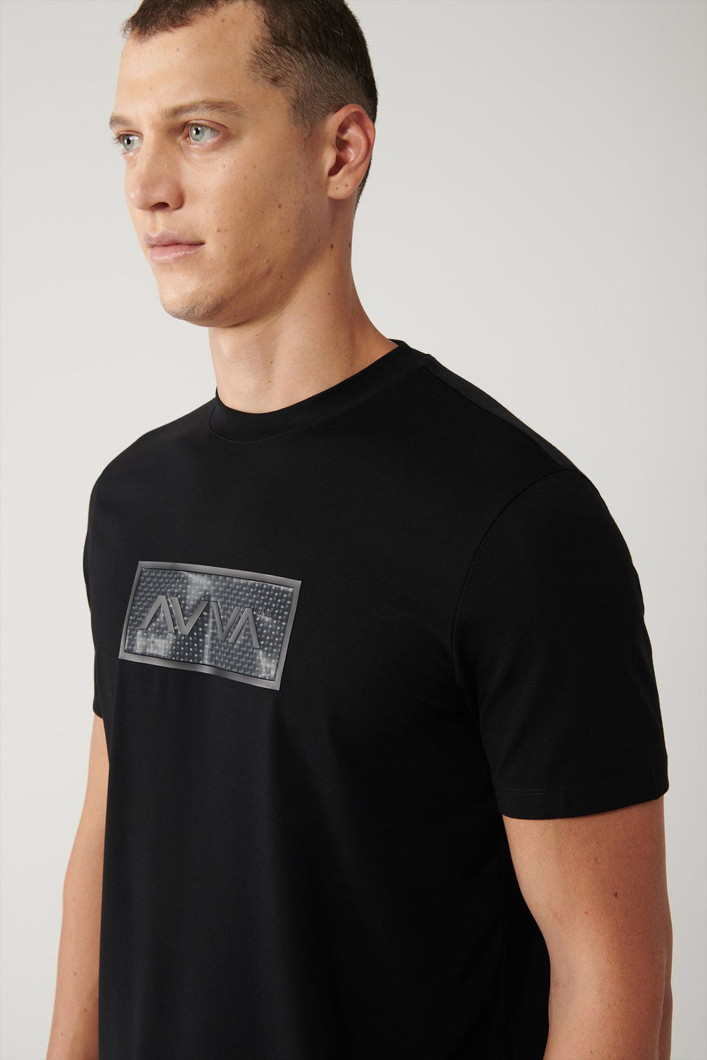 Men's black bike collar printed soft touch t-shirt A41y1180
