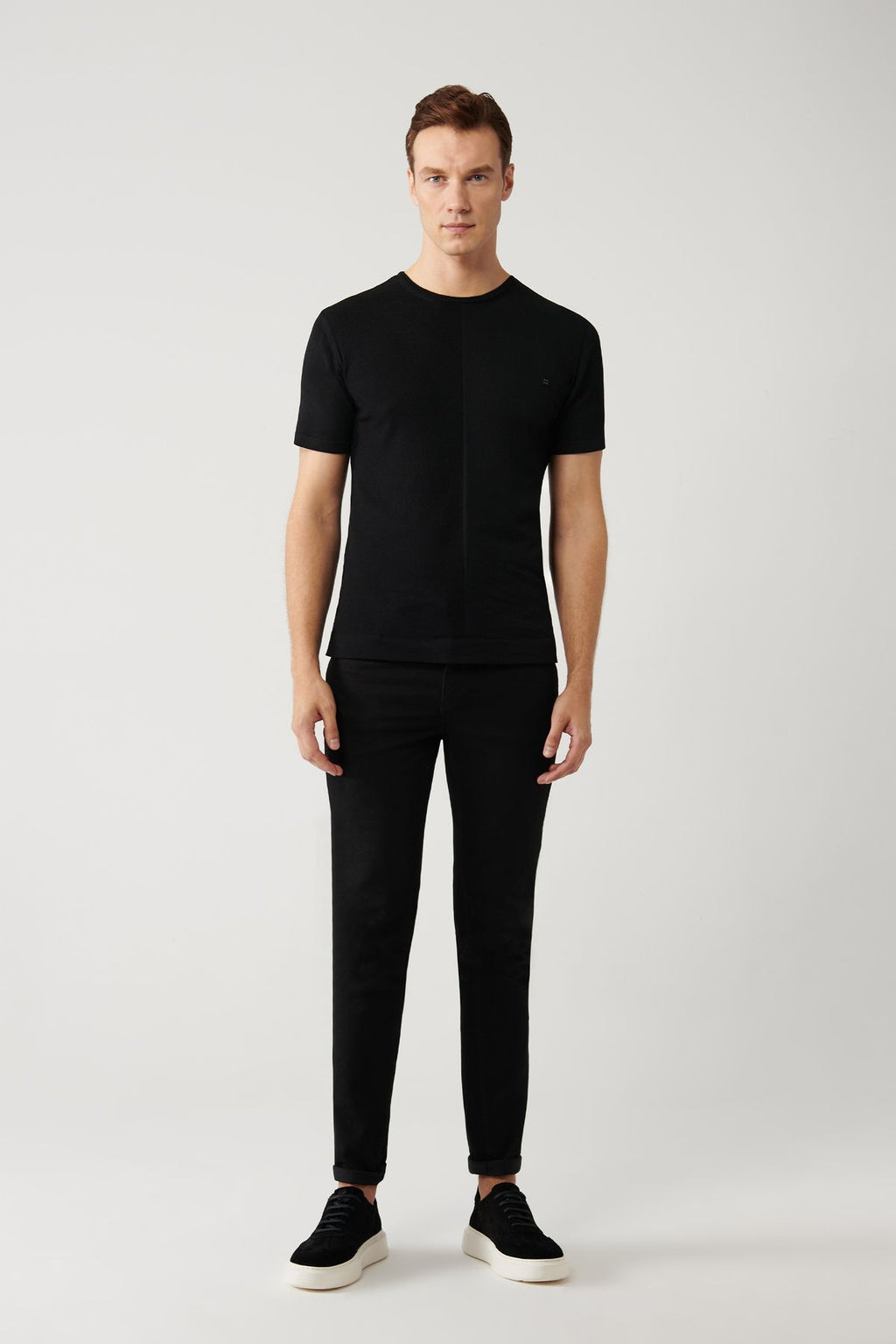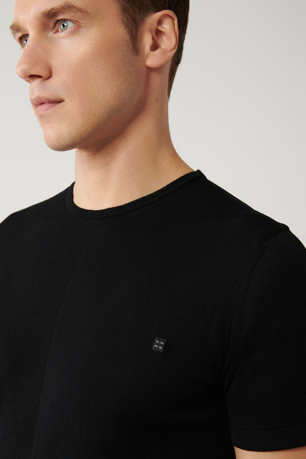 Men's black bike collar rayon textured knitwear T-shirt A41y5099