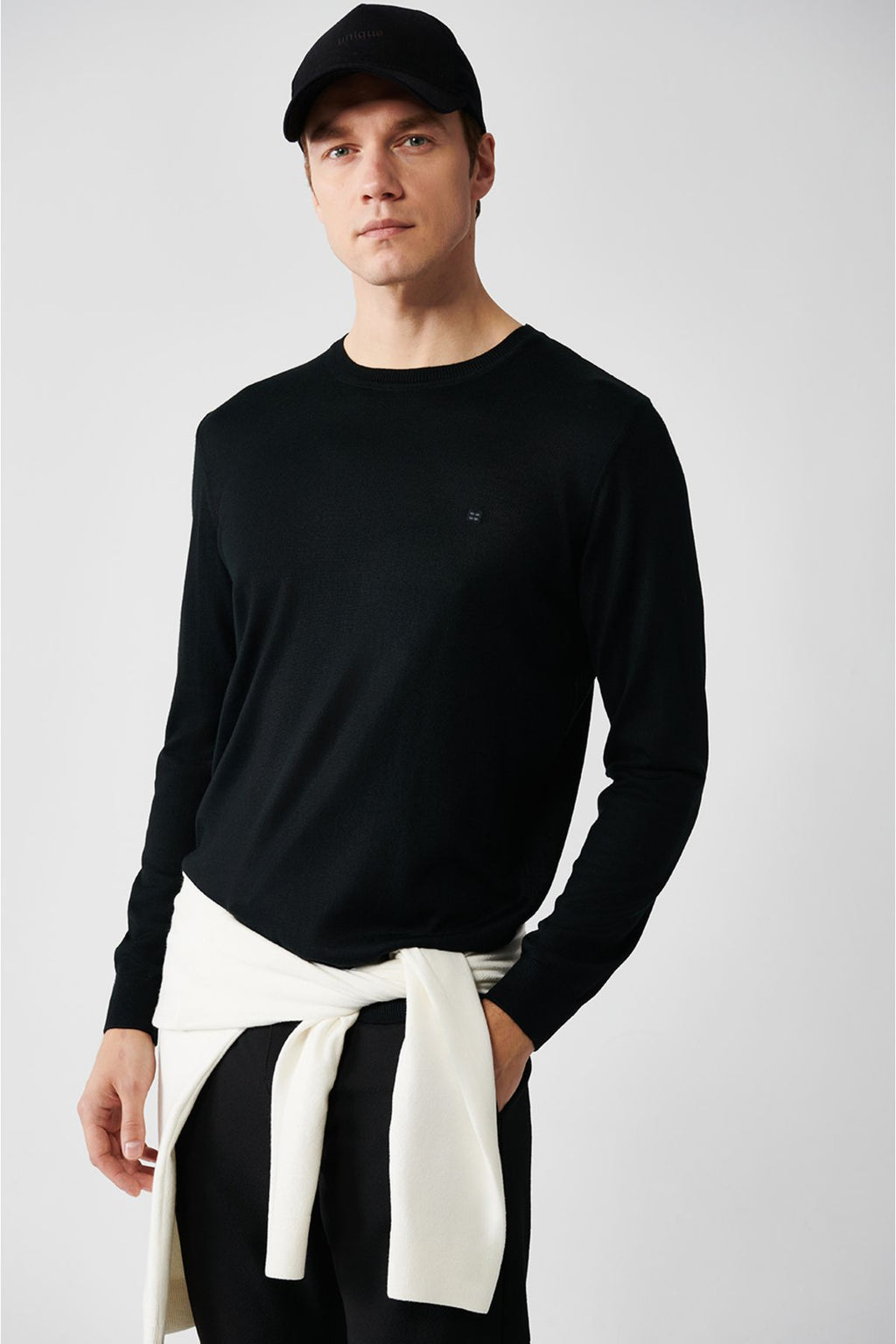 Men's black bike collar wool mixed knitwear sweater B005013