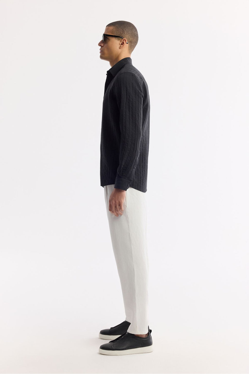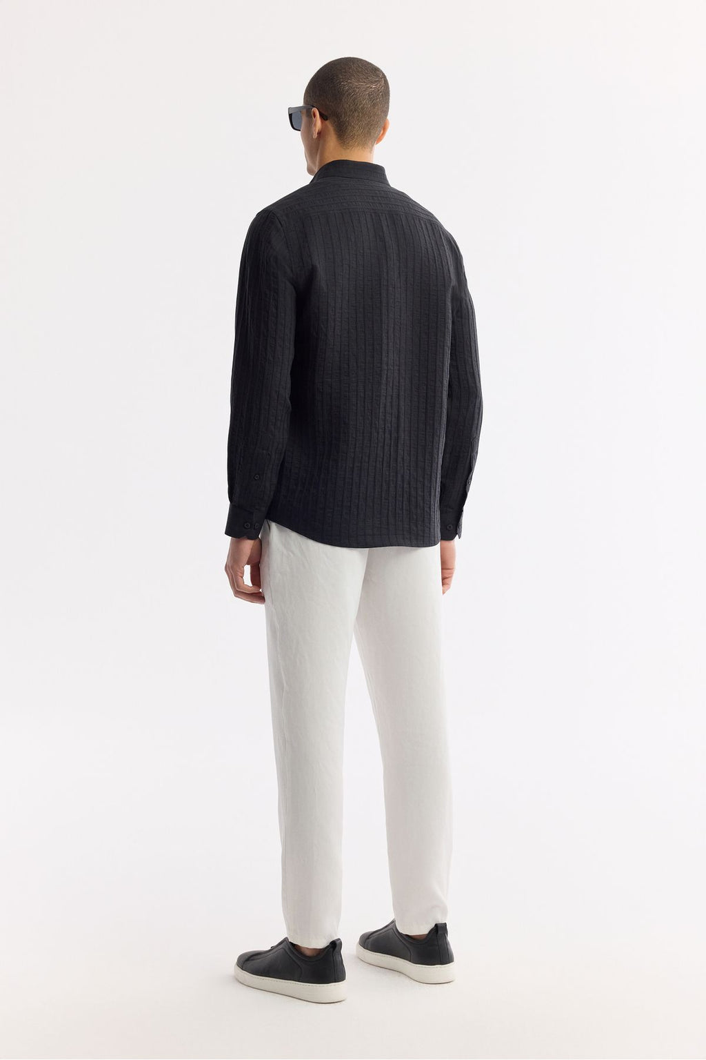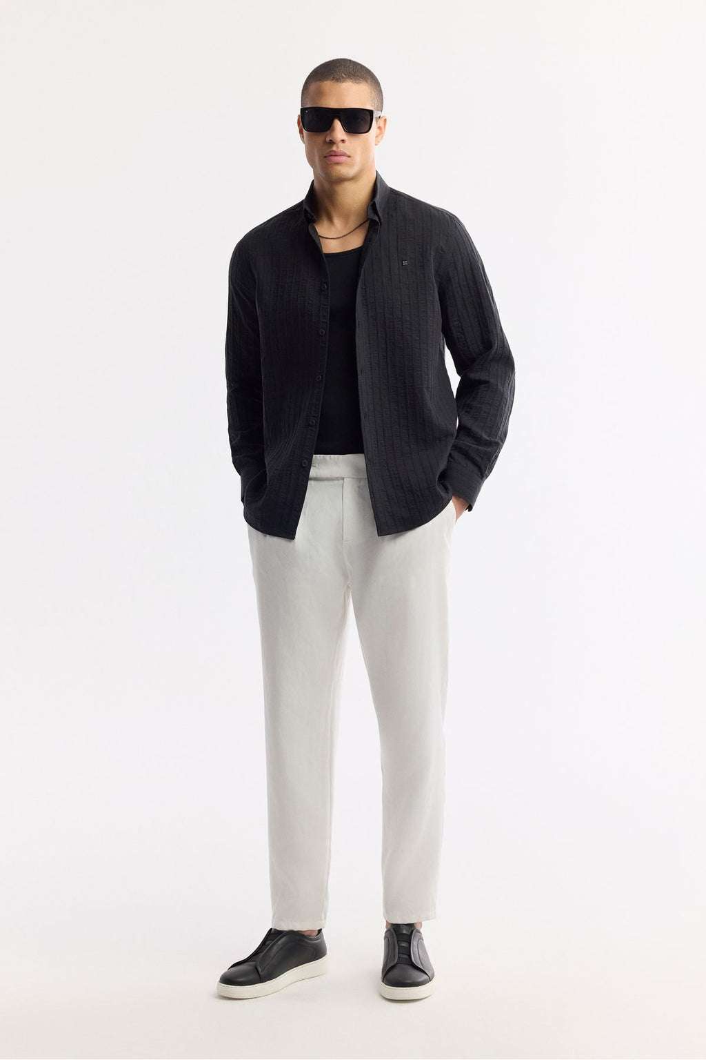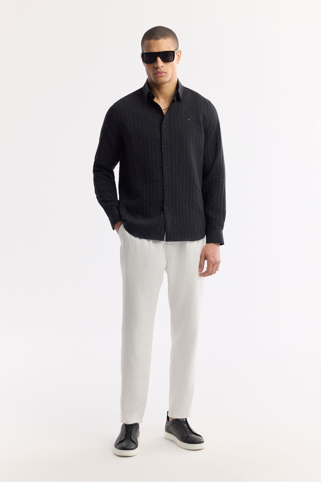 Men's black bottom Britli collar striped Comfort Fit Long Sleeve Shirt A51y2012