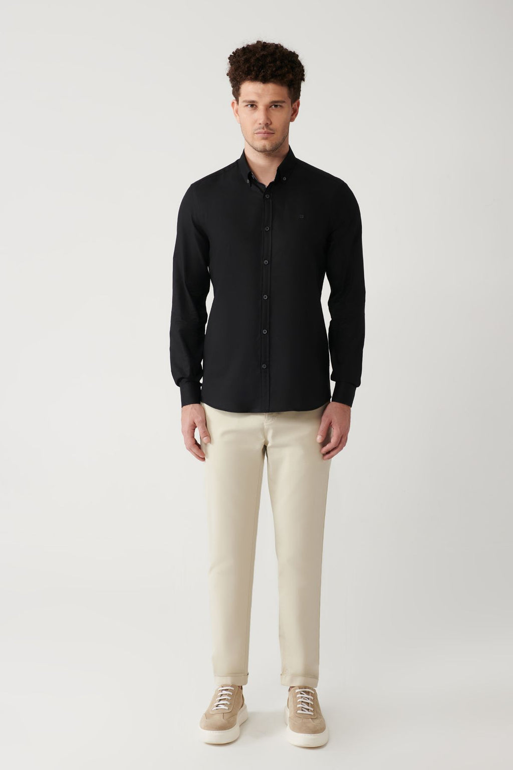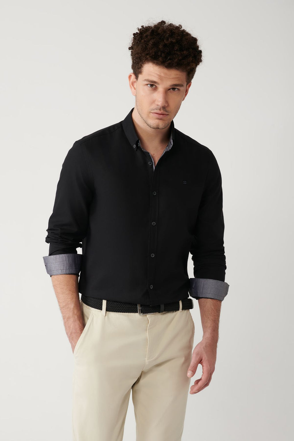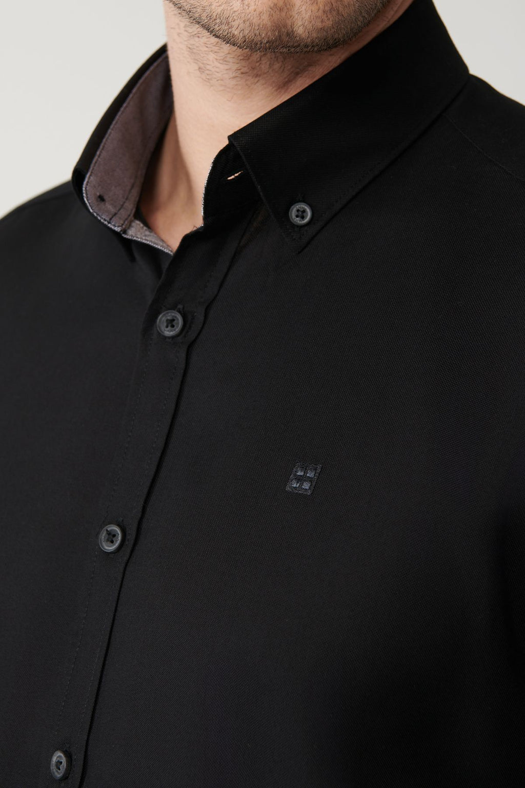 Men's black button collar 100 %cotton oxford shirt B002034